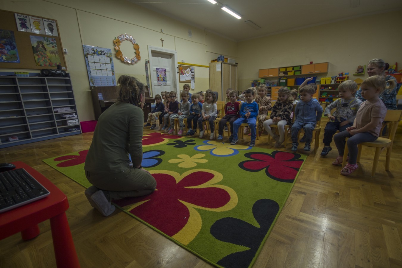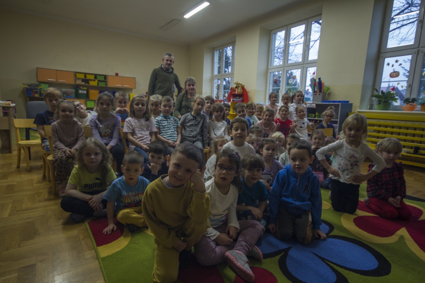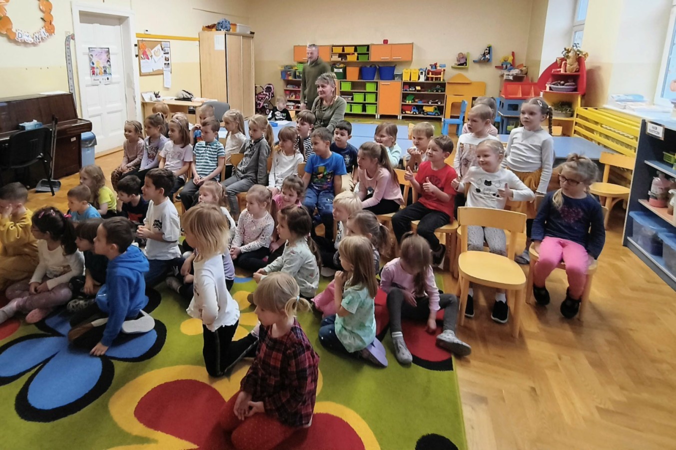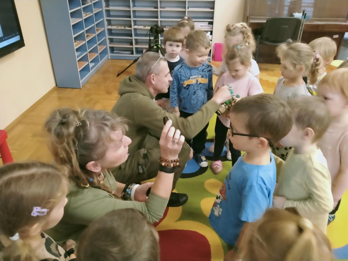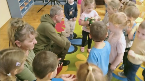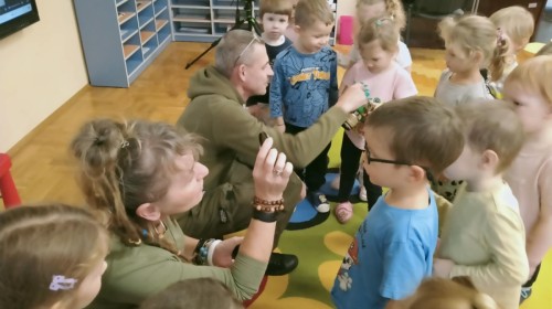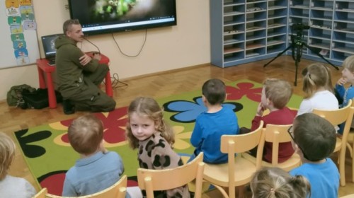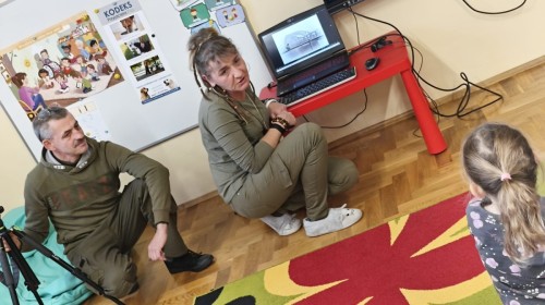 W poniedziałek 17 listopada nasze przedszkole odwiedziła para fotografów.📷 Nasi podopieczni mieli okazję obejrzeć na dużym ekranie niezwykłe zdjęcia,👀 bo przecież np. po kałużach💦 się świetnie skacze, ale żeby tam ciekawych ujęć szukać! A te pieski, lisy, owady pokazane w powiększeniu - naprawdę było co oglądać.😀 Największym zainteresowaniem cieszyły się jednak aparaty fotograficzne, które można było wziąć do ręki, a także filtry fotograficzne, przez które świat wyglądał jakoś inaczej.📷 Bardzo dziękujemy państwu Barskim za przyjazd i prezentację.😀