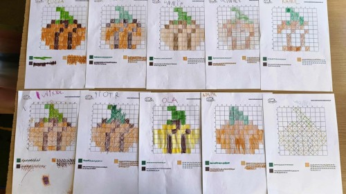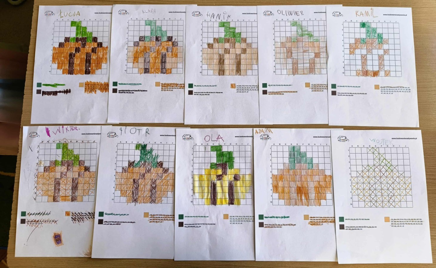 Tym razem nasze spotkanie z kodowaniem🎲 przebiegało w atmosferze spotkań z Dynią🎃. Biedronki odkodowywały zaszyfrowane obrazki, układały puzzle z Dyniami🎃🎃, szukały dyń ukrytych pod kubeczkami oraz budowały wieże z kolorowych kubeczków wg zaszyfrowanej wiadomość.👀 Z okazji Dnia Dyni🎃 bawiliśmy się do muzyki "The Addams Family Theme Song"🎶 Wesoło miną nam ten dzień.😀😀😀