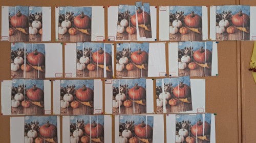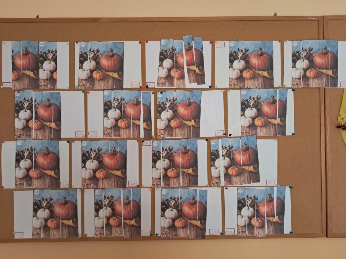 Z okazji Dnia Dyni🎃 najmłodsze przedszkolaki kodowały🎲 na dywanie układając ogromną dynie z korowych kartoników na macie do kodowania. Dzięki odsłanianiu kubeczków i szukaniu w nich dyni, "Stokrotki"🌼 dowiedziały się jak różnorodne pod względem wielkości, kształtu i koloru mogą być te warzywa.🎃 Na podsumowanie zajęć dzieci układały obrazek z dyniami z pociętego na paski obrazka.😀W tym dniu wszystkie maluszki były ubrane w kolorze pomarańczowym,🟠 aby w ten sposób uczcić Dzień Dyni.🎃🎃🎃