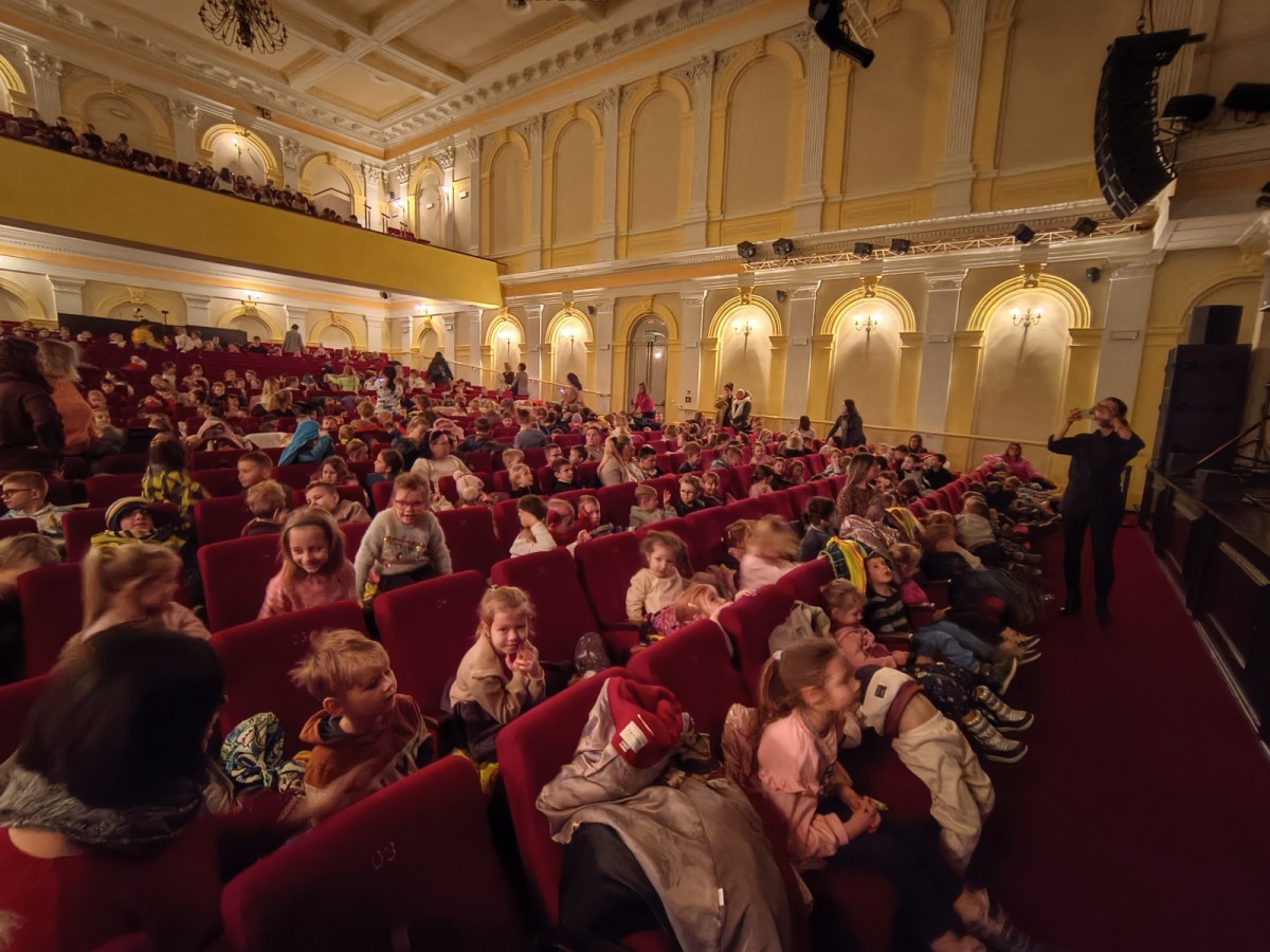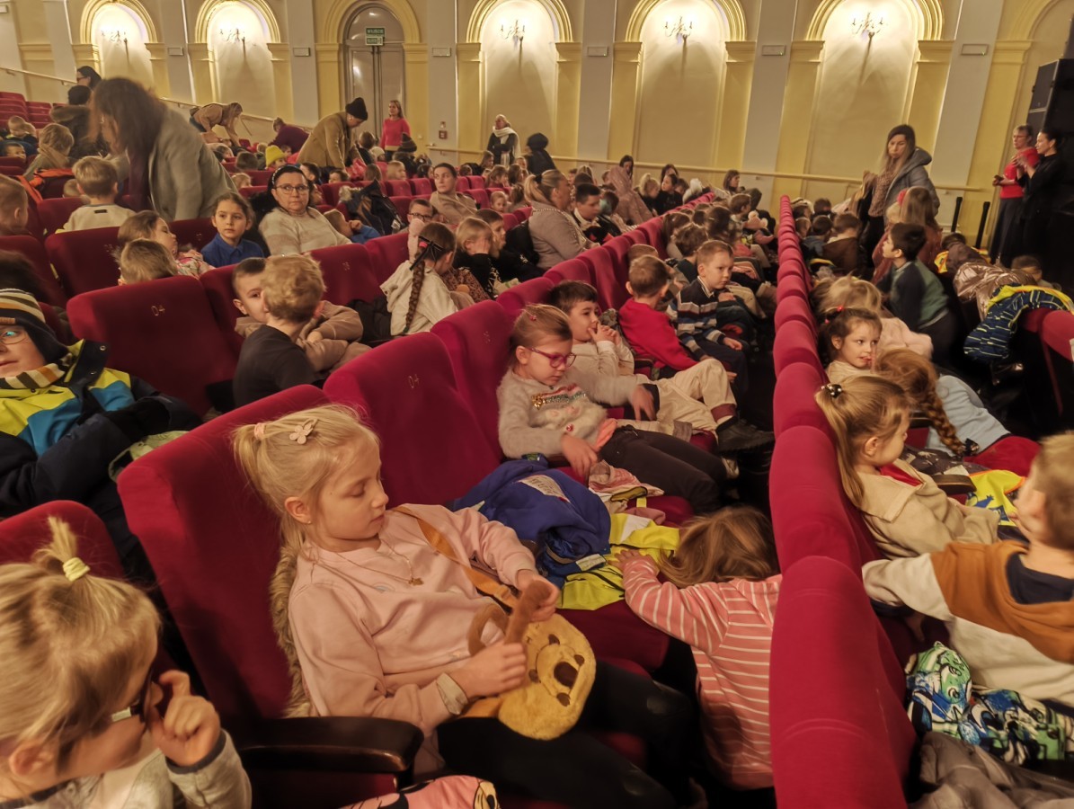Dzieci z naszego przedszkola 👩👧👧 uczestniczyły w musicalu „Dziadek do orzechów”👴🌰🎶, który był przygotowany specjalnie z myślą o najmłodszych widzach.😀 Przedstawienie w przystępny i bajkowy sposób opowiadało znaną historię, łącząc muzykę, taniec oraz kolorową scenografię.🎶😀 Udział w musicalu pozwolił dzieciom rozwijać wrażliwość artystyczną, wyobraźnię oraz zainteresowanie kulturą. Był dla dzieci bezpiecznym oraz radosnym przeżyciem artystycznym.😀