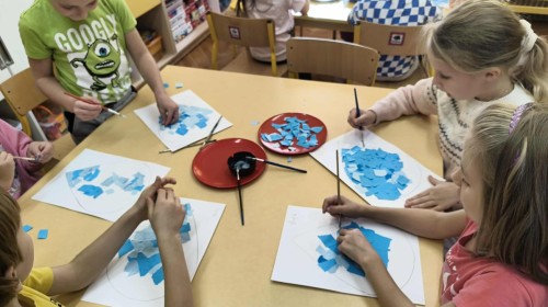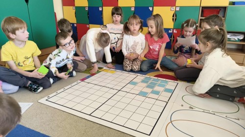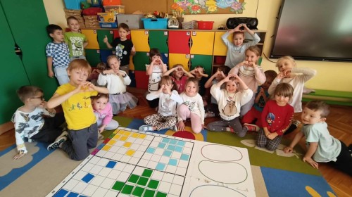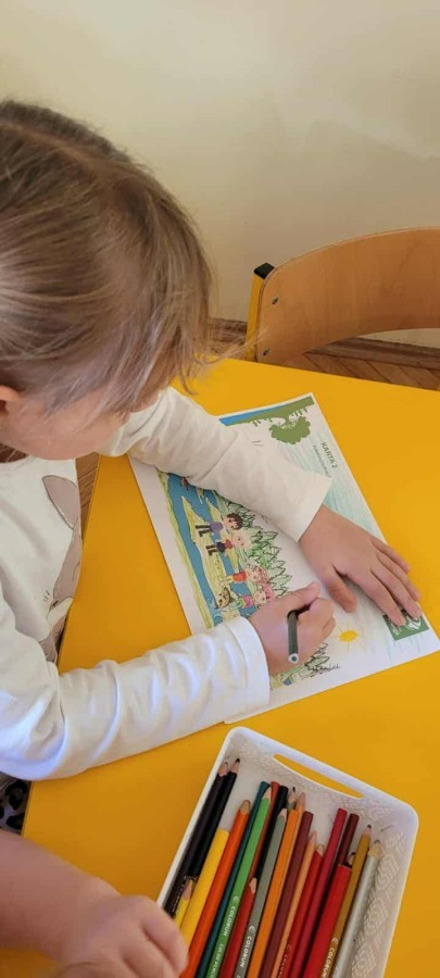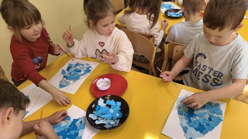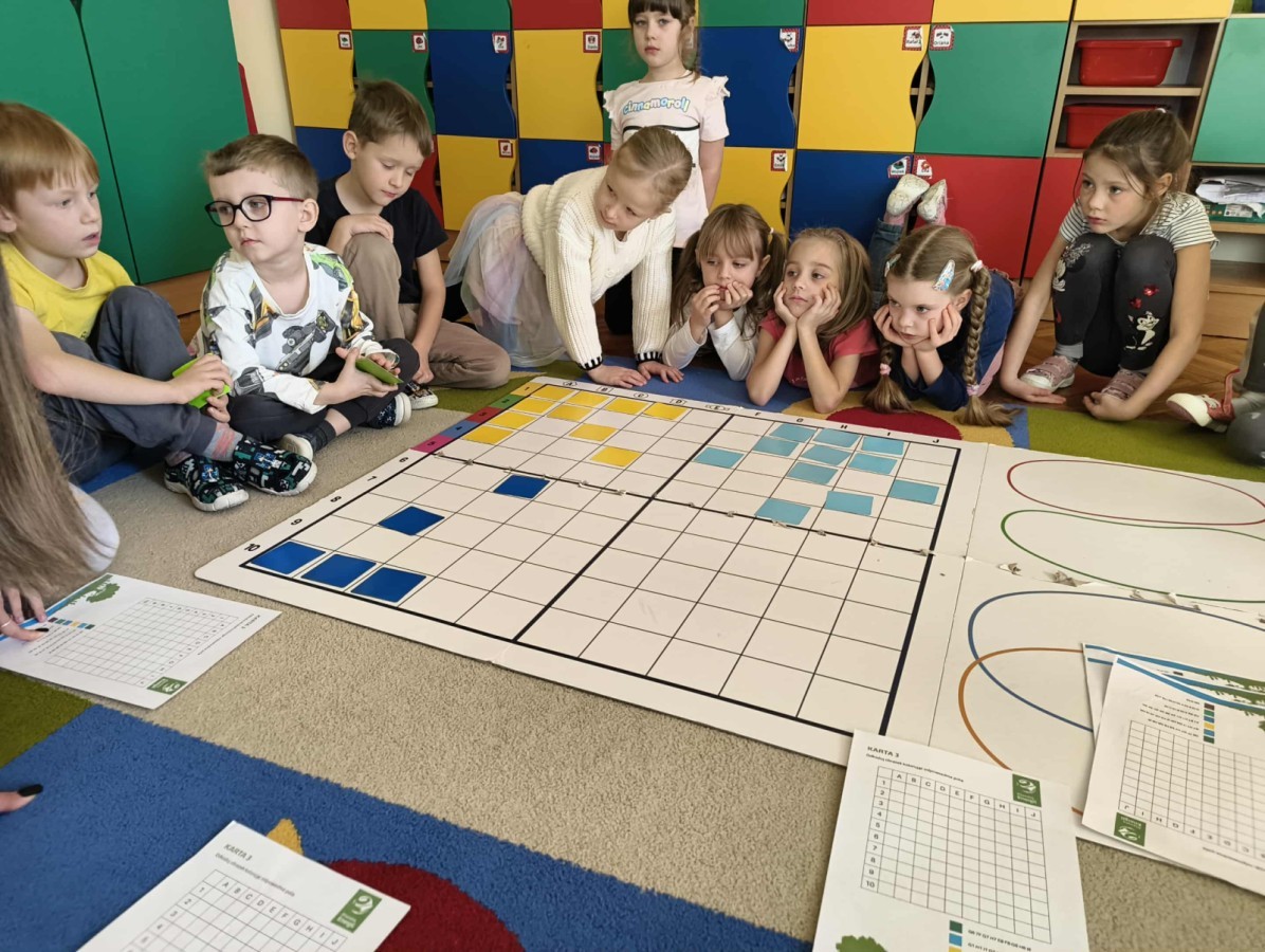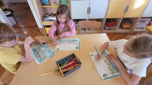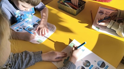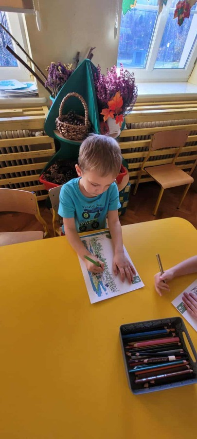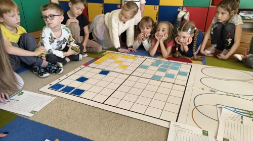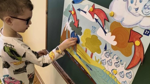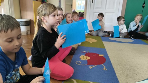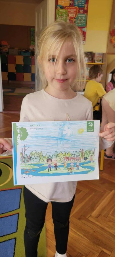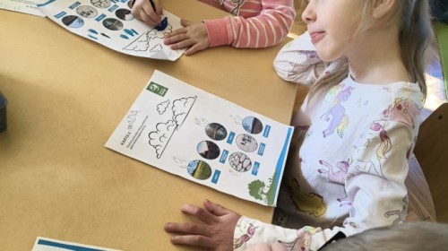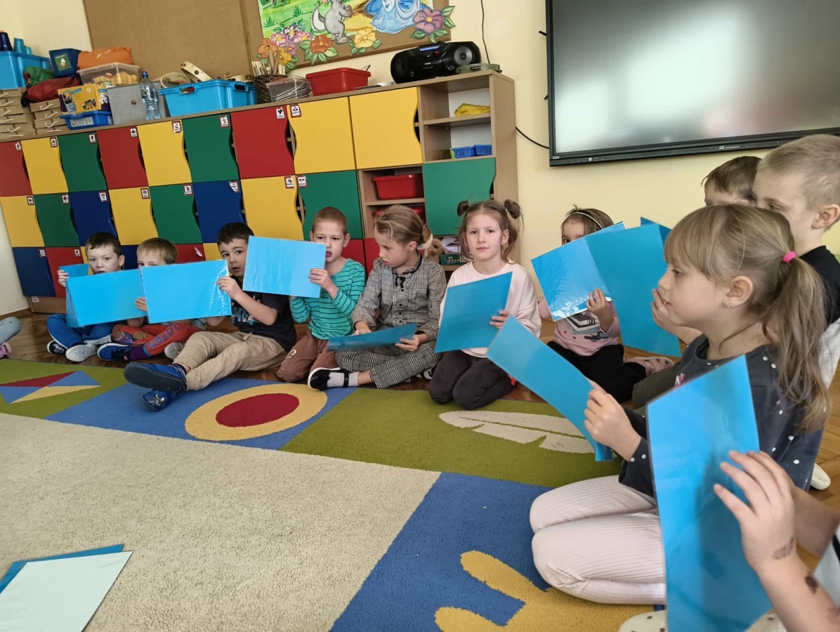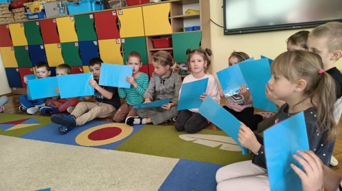 Dowiedziały się, że człowiek w większości składa się z wody, cała przyroda która nas otacza składa się z wody.💦 Bez wody nie było by życia na naszej planecie 🌏 i zamiast pięknej niebiesko – zielonej kuli widzianej z kosmosu byłaby tylko pustynia z górami, szara, zimna i nie nadająca się do życia. Zapoznały się schematem obiegu wody💦w przyrodzie. W oparciu o kolorowe plansze oraz elementy ruchome. Dzięki czemu dzieci mogły same manipulowały elementami przy układaniu „obiegu wody.” Na koniec wspólnie ułożyliśmy na kratownicy z wykorzystaniem kolorowych kartoników obieg „wody w przyrodzie”. W wolnych chwilach dzieci kolorowały kartę pracy nr 2. Sprawiła ona im wiele radości.