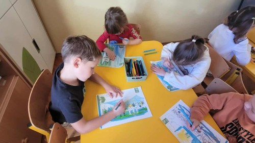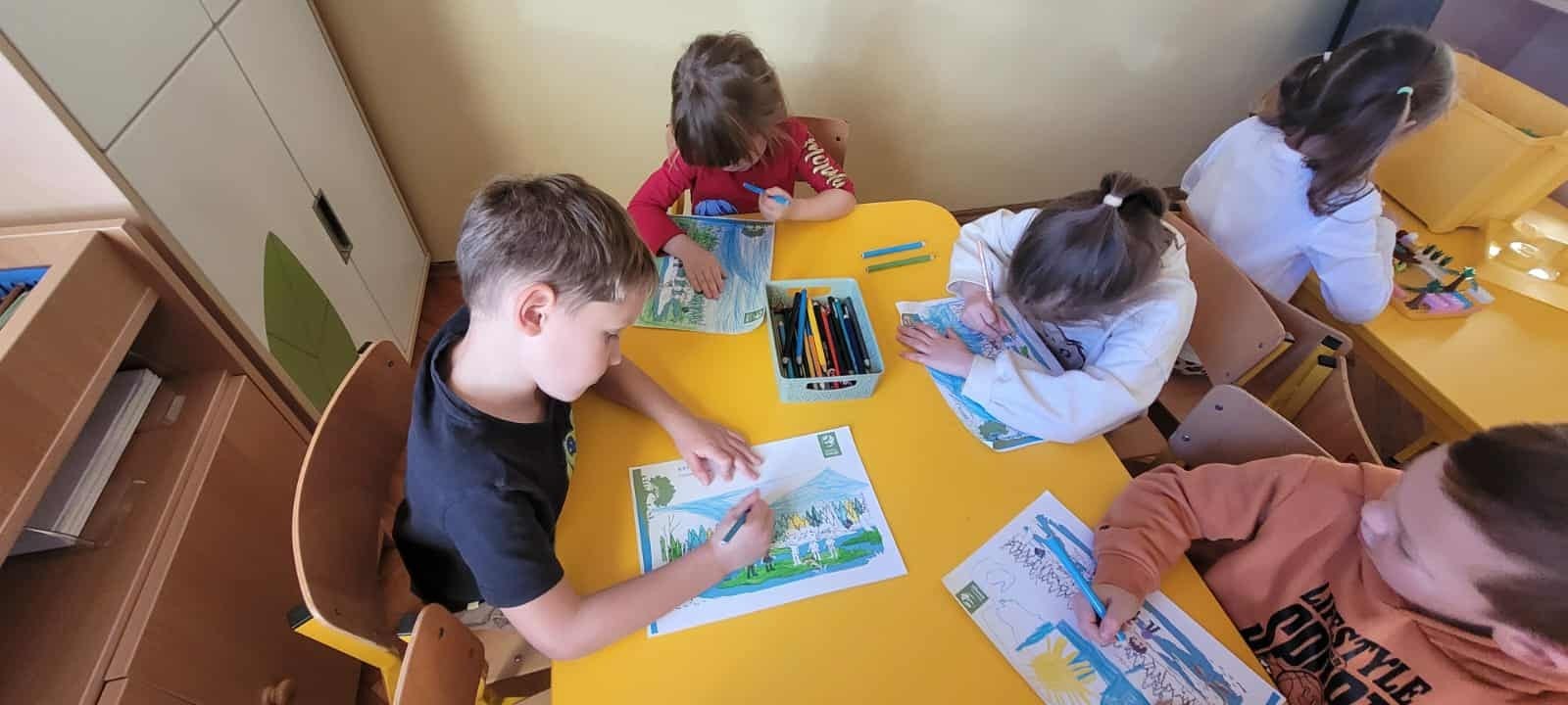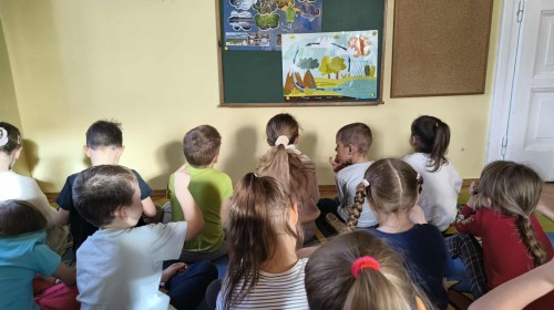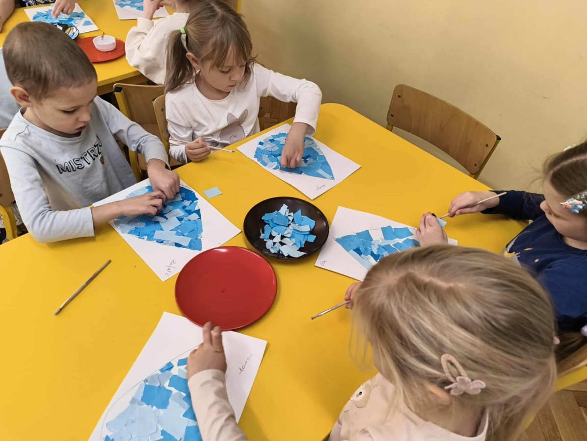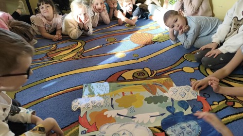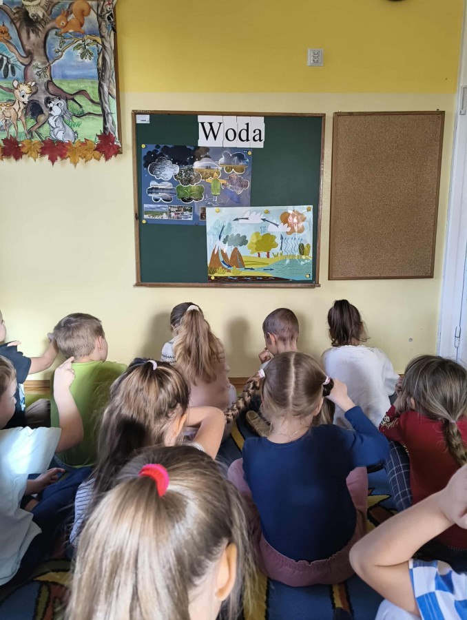 W trakcie zajęć dzieci wysłuchały podcastu Dzikoprzygody 🌲🌳 Anety Chmielińskiej. Obejrzały ilustracje związane z wodą.💦