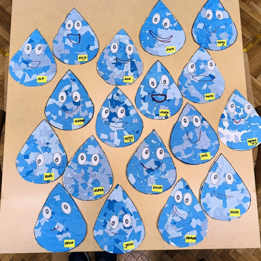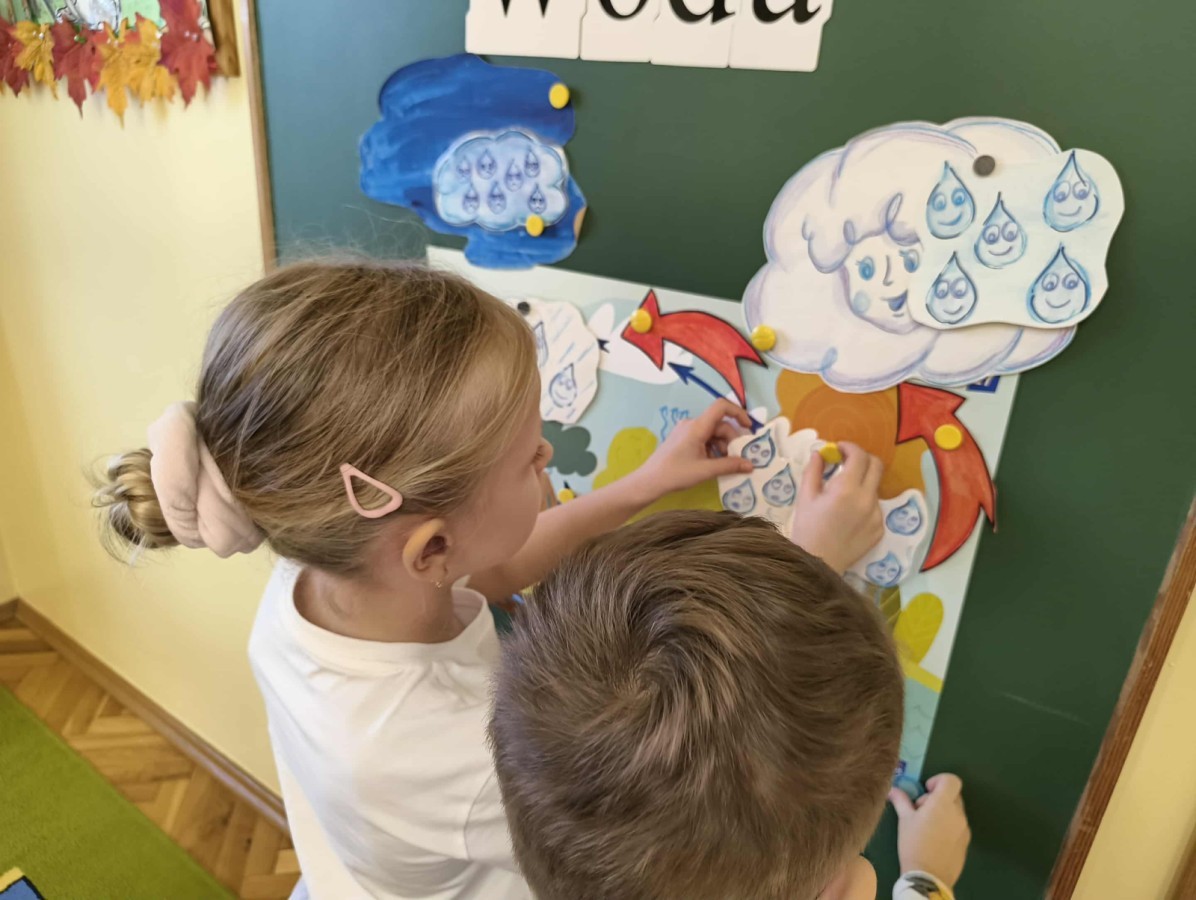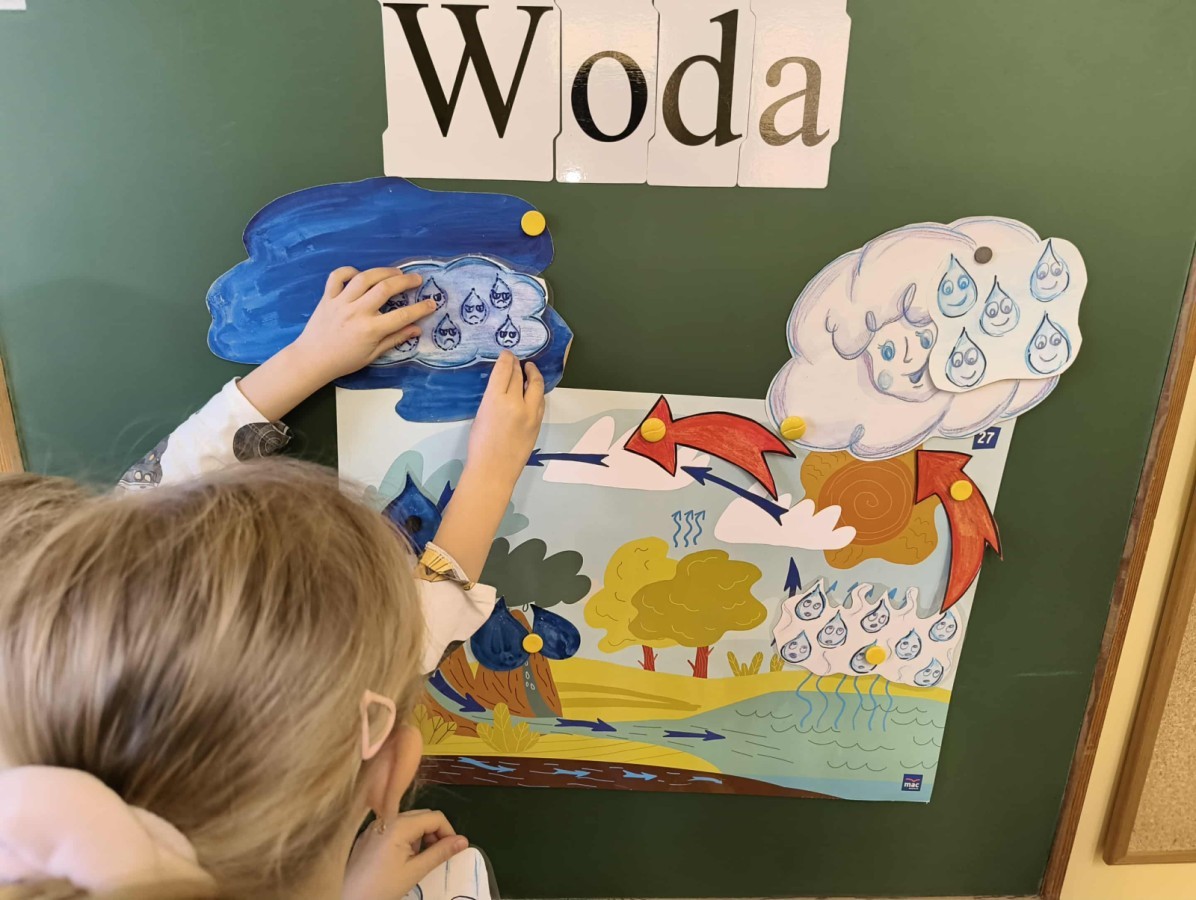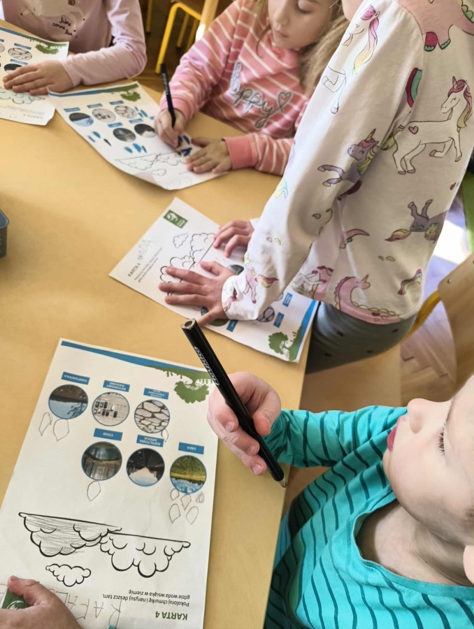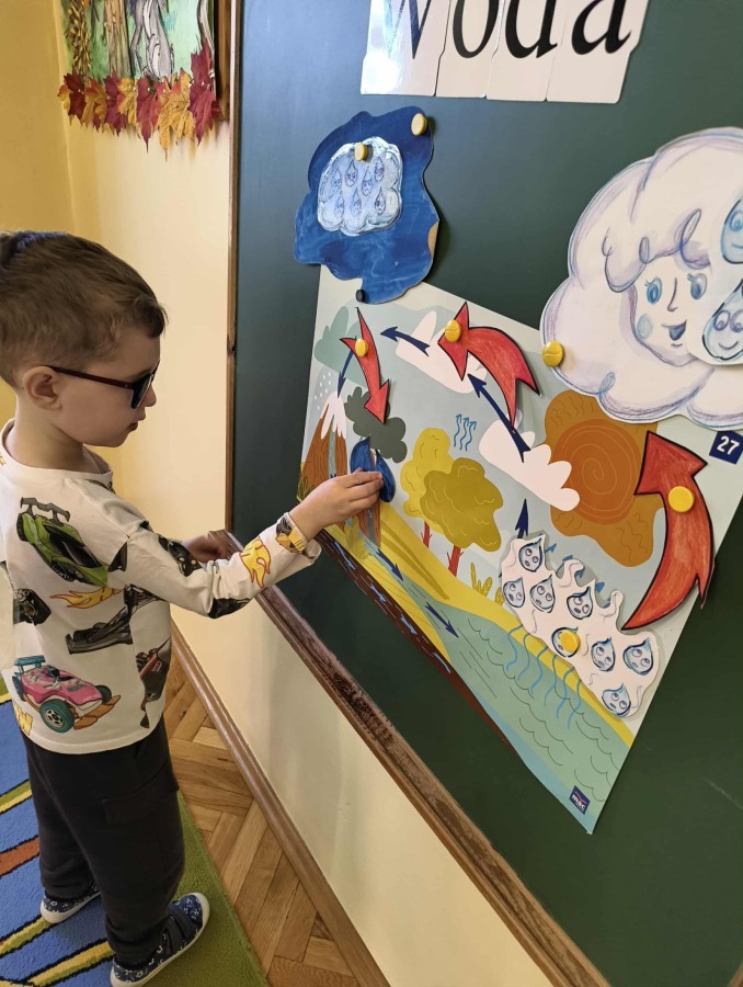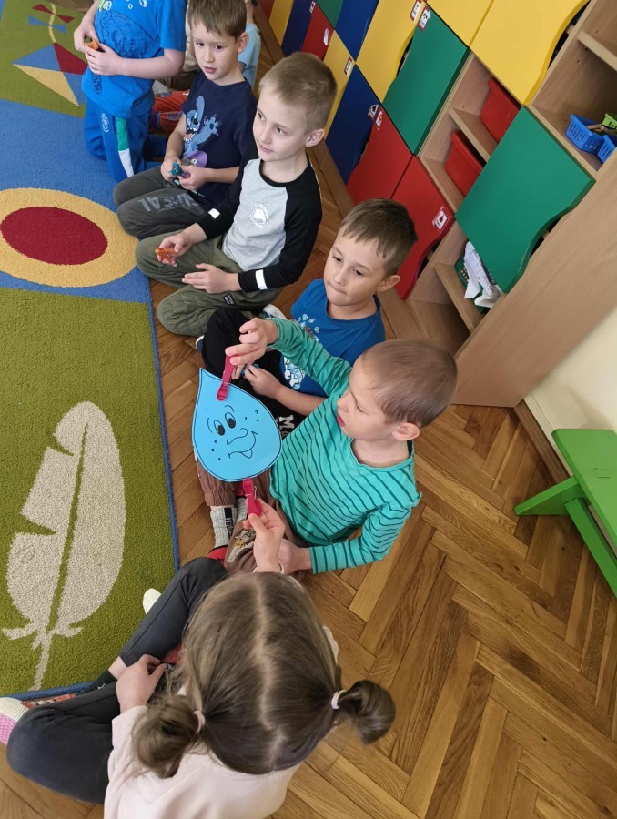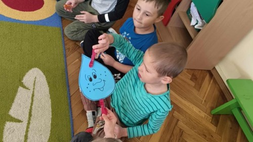 Posłuchaliśmy opowiadania o kropelce wody,💦która wędruje w przyrodzie z obłoków do gleby. Po przez wodne źródełka woda wędruje do rzeki a ogrzewana przez słoneczko paruje i zamienia się w obłoczki, które wędrują po niebie. I znowu spadają na ziemię z deszczem. Dzieci wiele wiedziały z tego tematu wspólnie razem opowiadaliśmy o wodzie zastanawiając się gdzie woda może wsiąkać w ziemię a gdzie tylko spływa po do kanału. Wspólnie razem wykonaliśmy kartę nr 4. Przed nami jeszcze wiele opowieści o wodzie oraz o jej znaczeniu w naszym życiu.😀