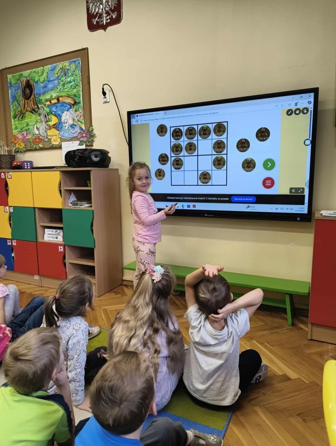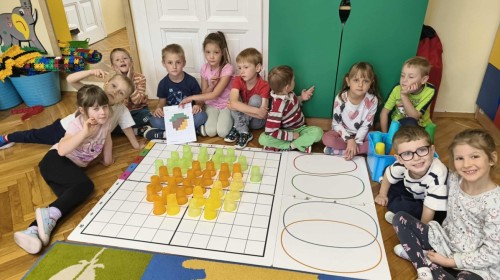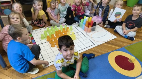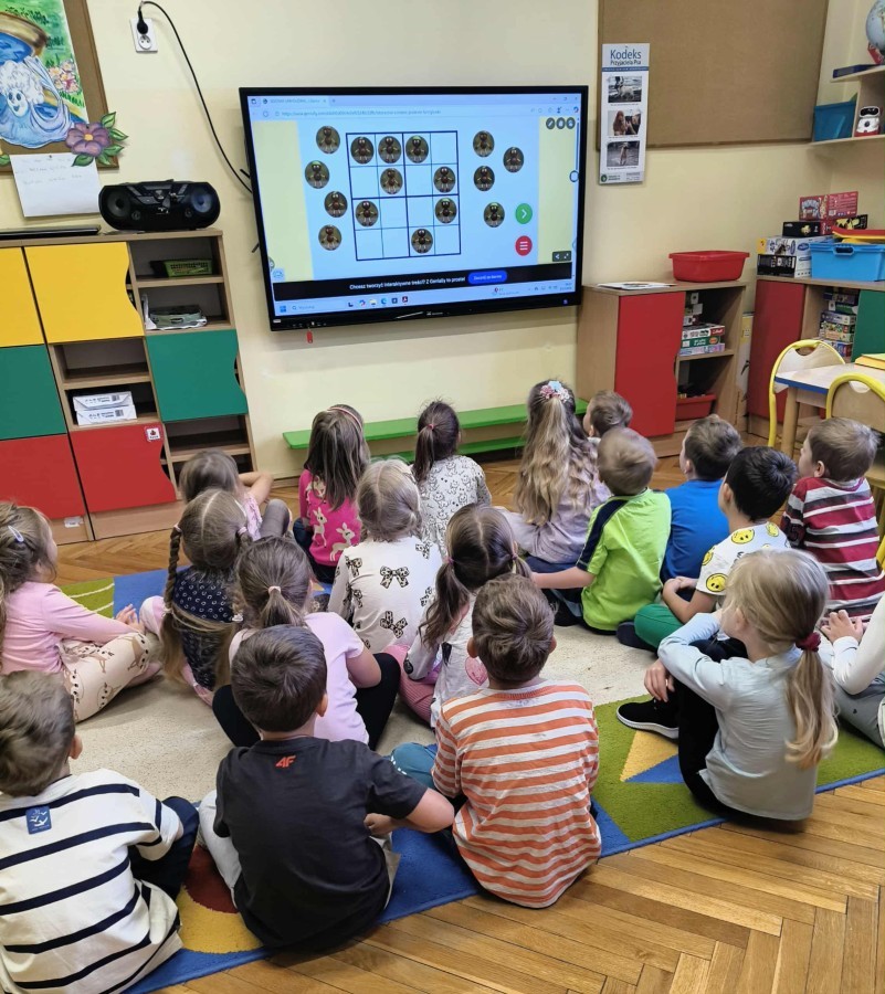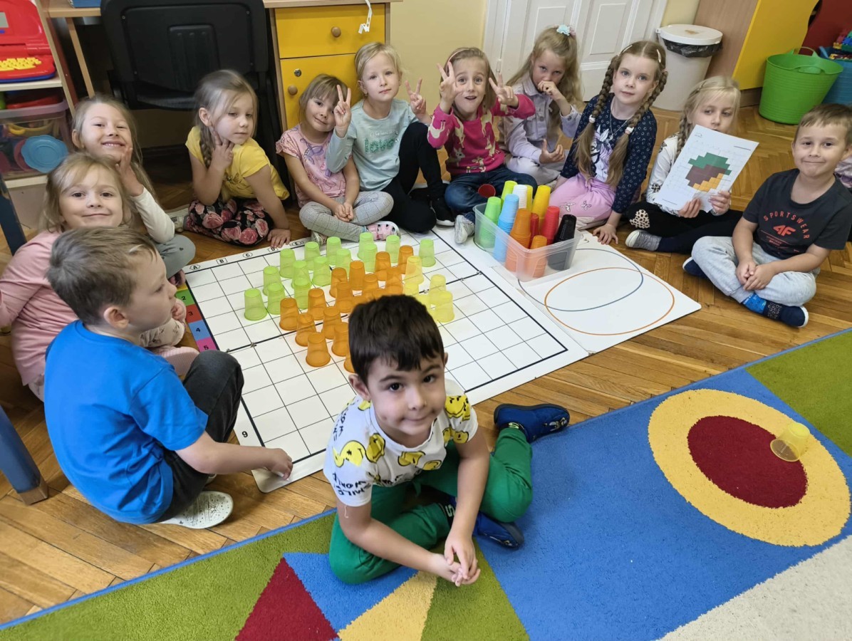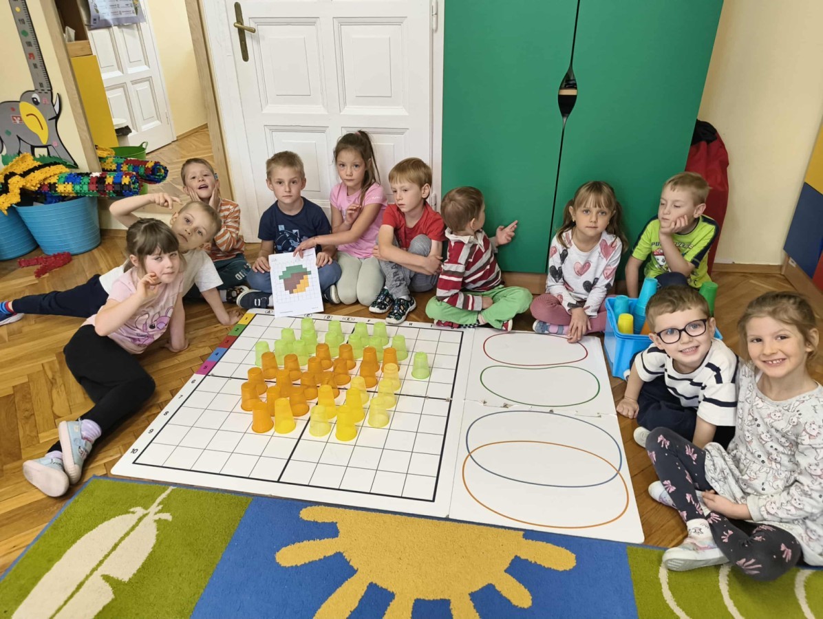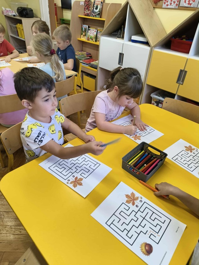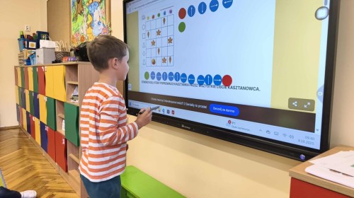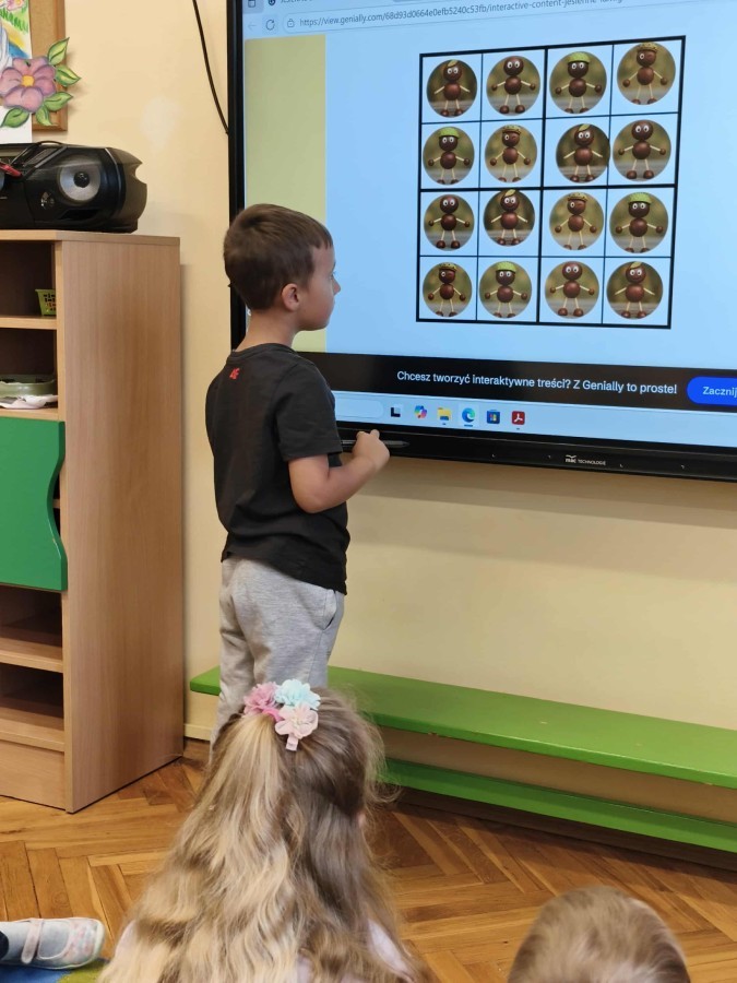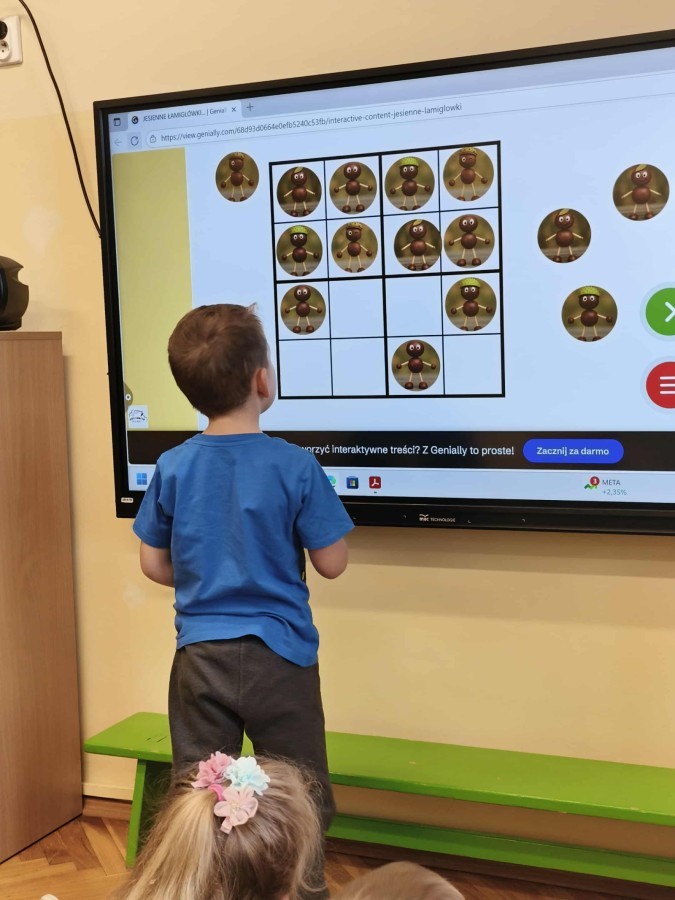 Kolorowa jesień,🟠🟡🟤 spadające liście🍁 i kasztany🌰 czyli skarby jesieni🍂 były tematem naszego spotkania z kodowaniem.🎲 Zadaniem dzieci było ułożenie kasztanowych ludzików obrazkowego sudoku na tablicy interaktywnej oraz w karcie pracy przy stoliku.🌰 Szukaliśmy cieni liści jesiennych, zbieraliśmy liście kasztana tworząc kod który poprowadzi kasztanka przez wszystkie pola, na których znajduj si liście kasztanowca i dębu.🍁 Na koniec w kartach pracy szukaliśmy drogi w labiryncie dla kasztanka, który szukał drogi by spotkać się z kasztanowymi przyjaciółmi.😀 Wszystko się nam udało wykonać.