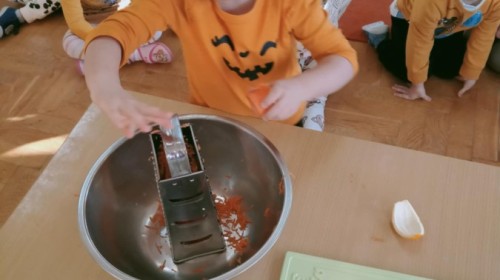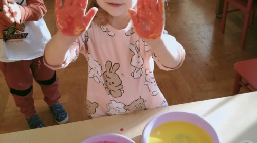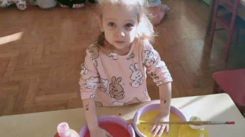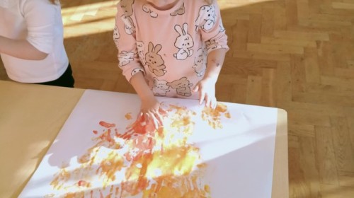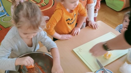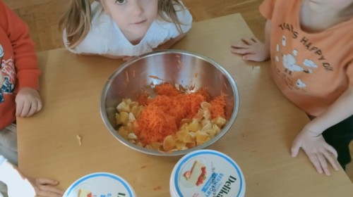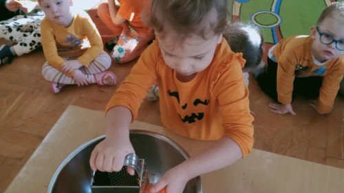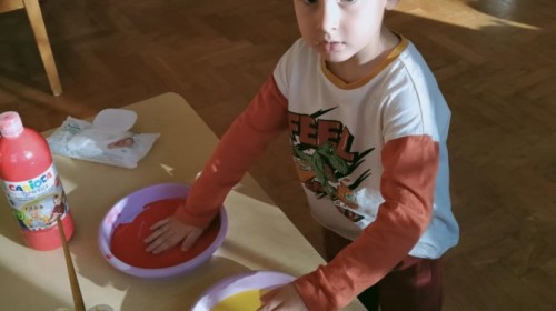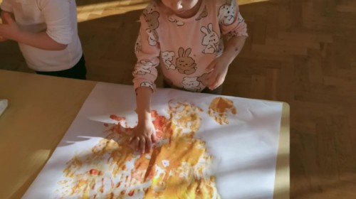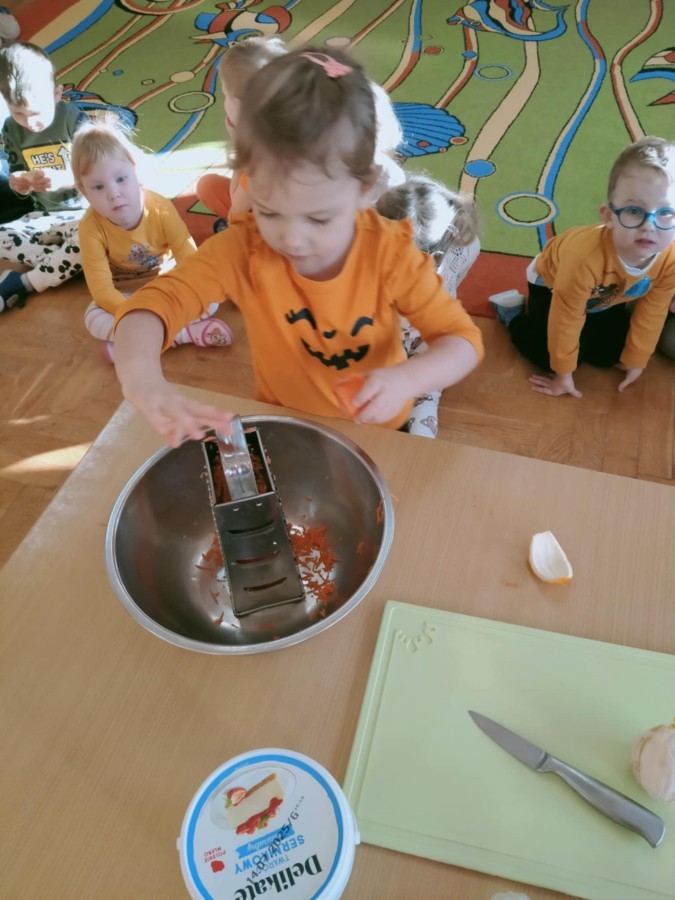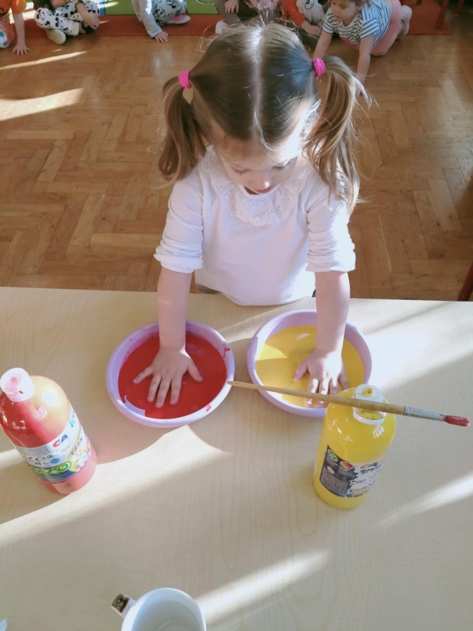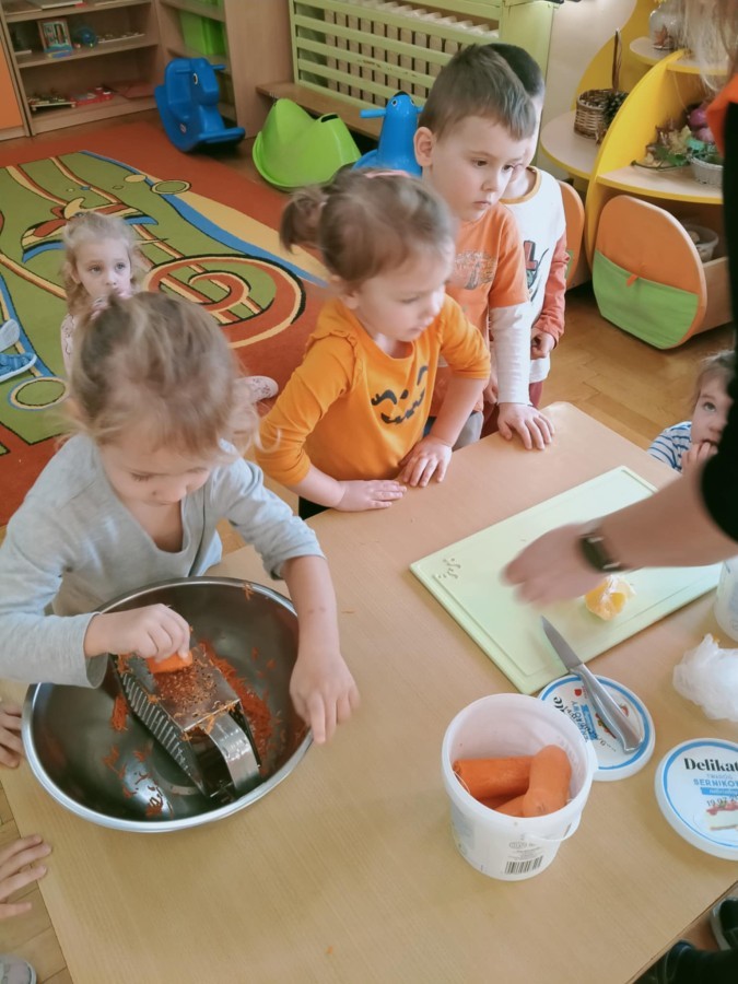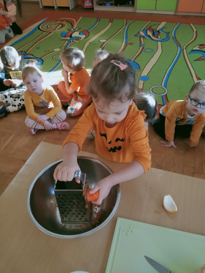 Pomarańczowy wtorek u Stokrotek🌼 obfitował w ciekawe aktywności. Stokrotki🌼 zrobiły sałatkę z pomarańczowego warzywa - marchewki🥕 oraz z pomarańczowej pomarańczy🍊Dzieciom bardzo smakowała zdrowa sałatka,🥗 dokładki były mile widziane. Dzieci przekonały się, z jakich kolorów powstaje barwa pomarańczowa, odbiły swoje rączki na sylwecie marchewki,🥕 tańczyły do piosenki o pomarańczy Paoli🥕 i rozwiązywały zagadki.❓ Oczywiście zabawa w liski też musiała być punktem programu😀