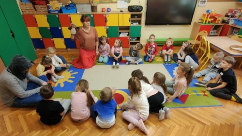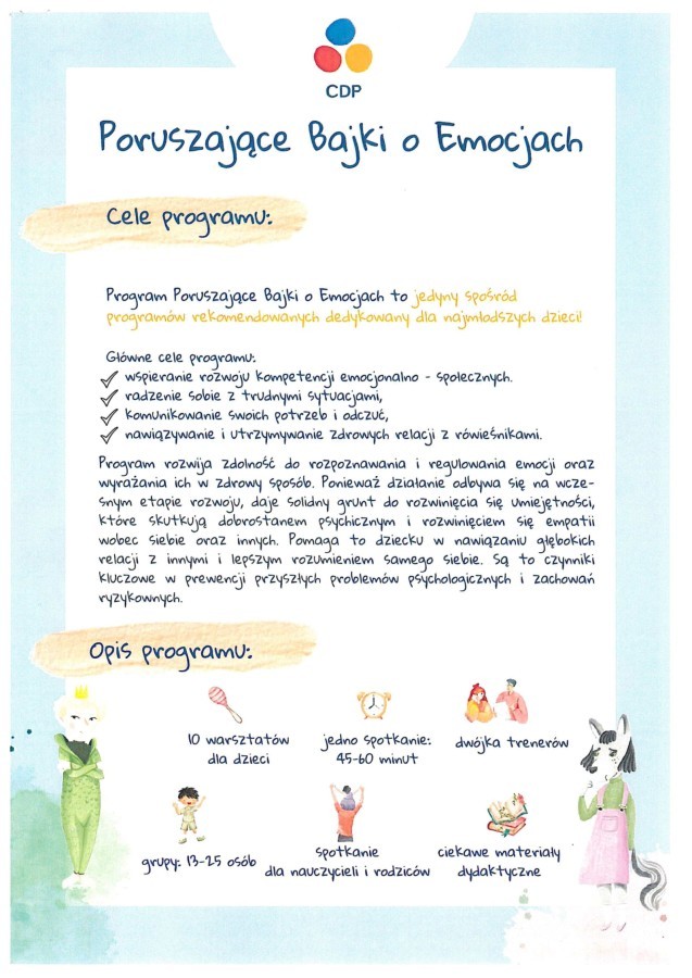 Biedronki🐞 biorą udział w program "Poruszające bajki o emocjach"📖😂😥 prowadzonym przez Centrum Działań Profilaktycznych. Głównym celem programu jest wspieranie rozwoju kompetencji emocjonalno - społecznych, radzenie sobie w sytuacjach trudnych, komunikowanie swoich potrzeb i utrzymywaniu zdrowych relacji z rówieśnikami.