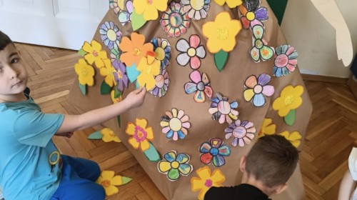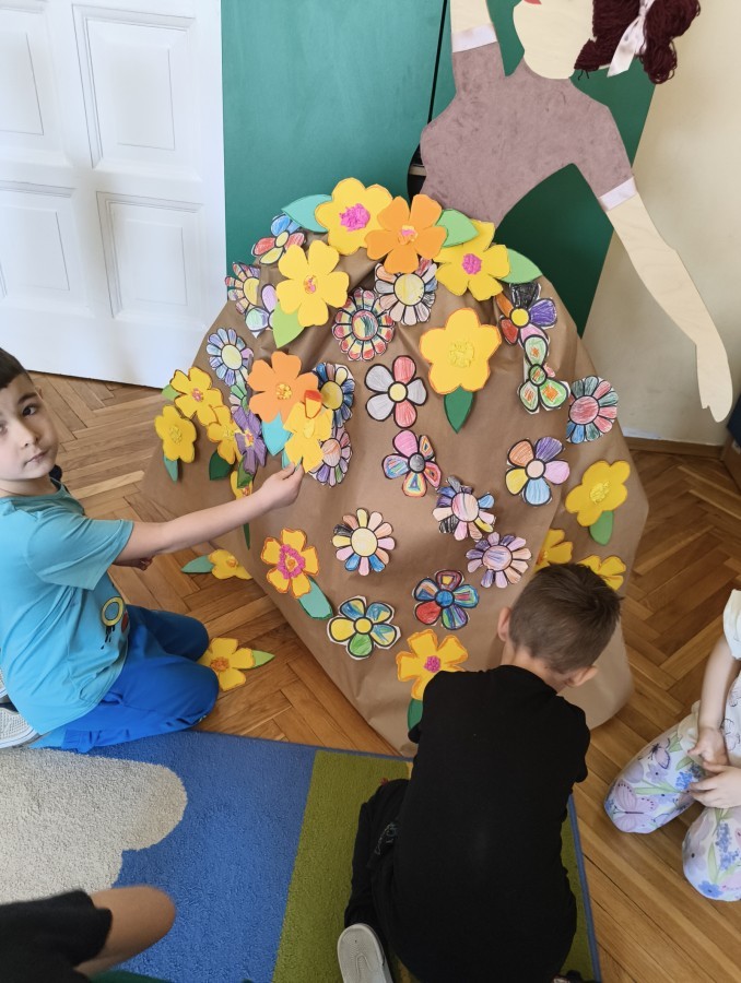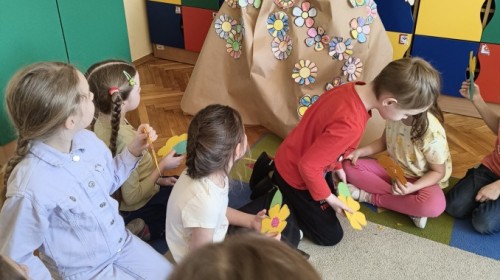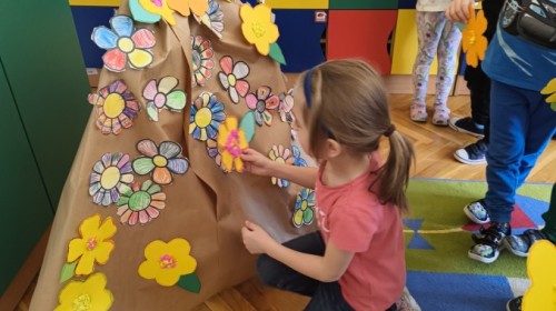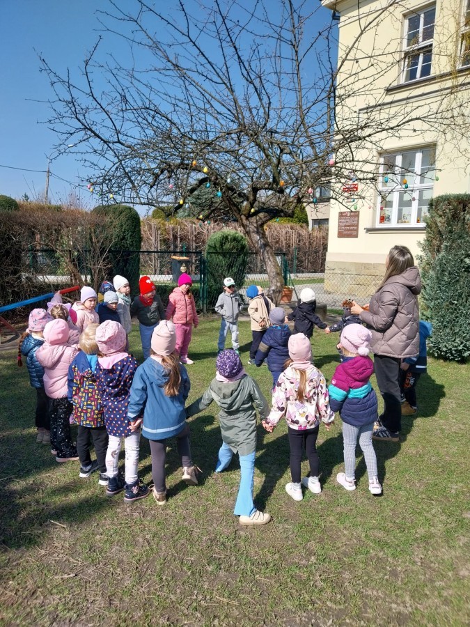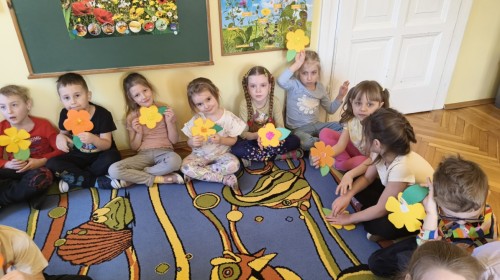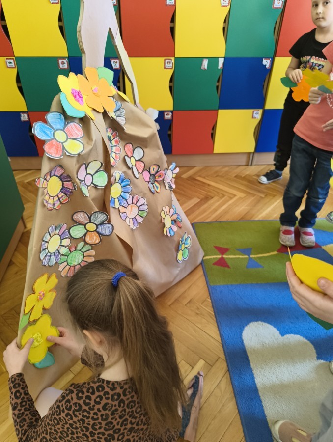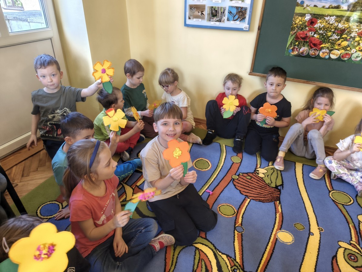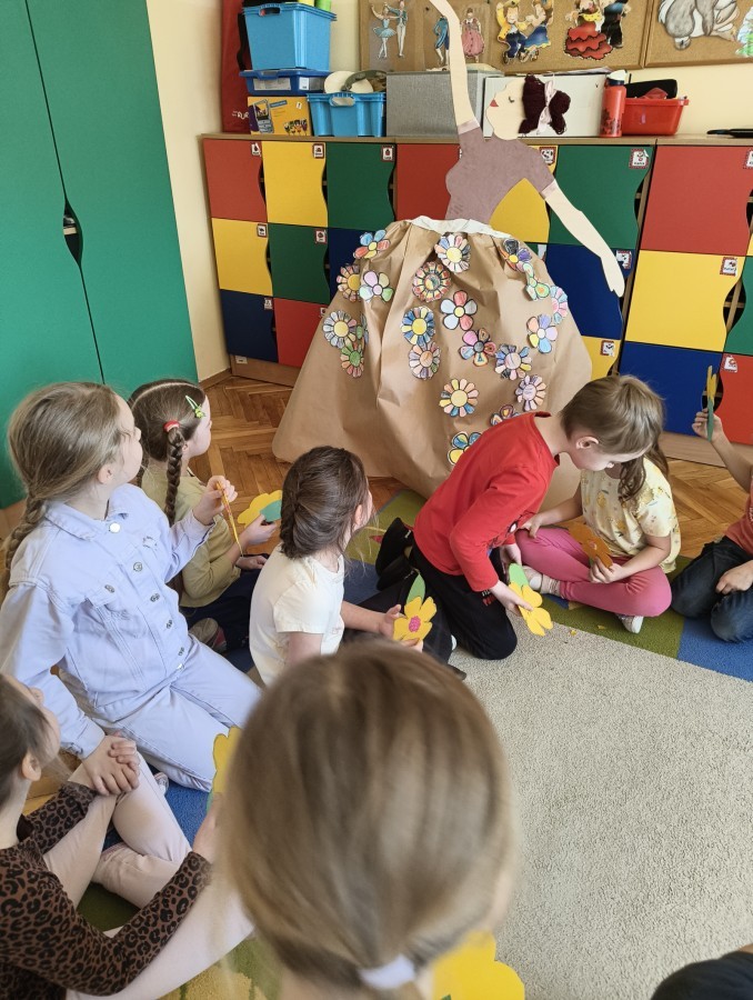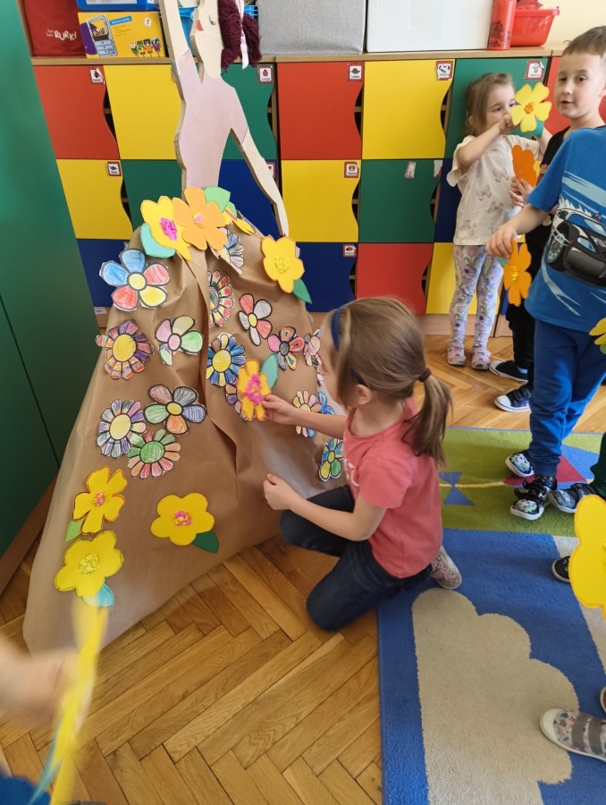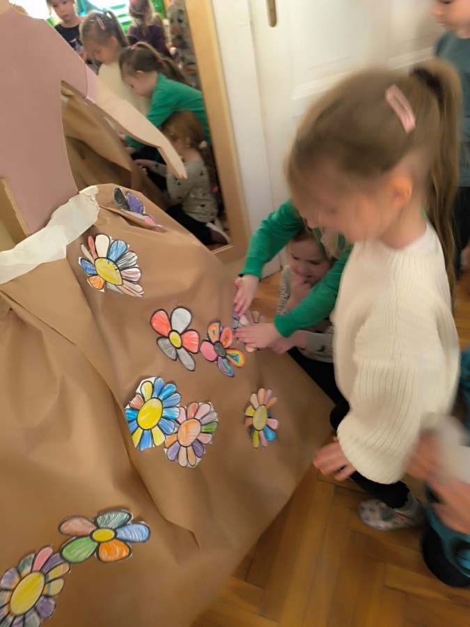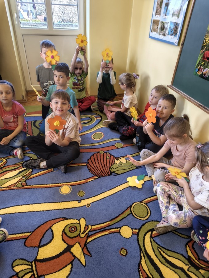 W poniedziałek 23 marca przywitaliśmy Wiosnę🌼, Biedronki🐞 i Krasnale😀 posłuchały opowieści o Wiośnie. Przygotowały piękne kwiaty, którymi ozdobiły suknię naszej Pani Wiosny🌼. Krasnale 😀 w ogrodzie przedszkolnym sportowo witały ten szczególny dzień a Biedronki 🐞 poszły szukać oznak wiosny.