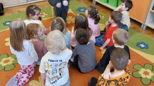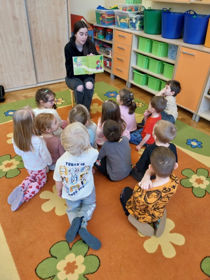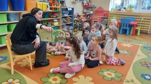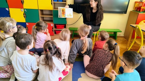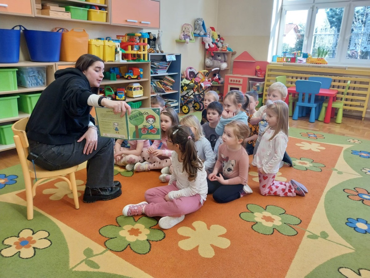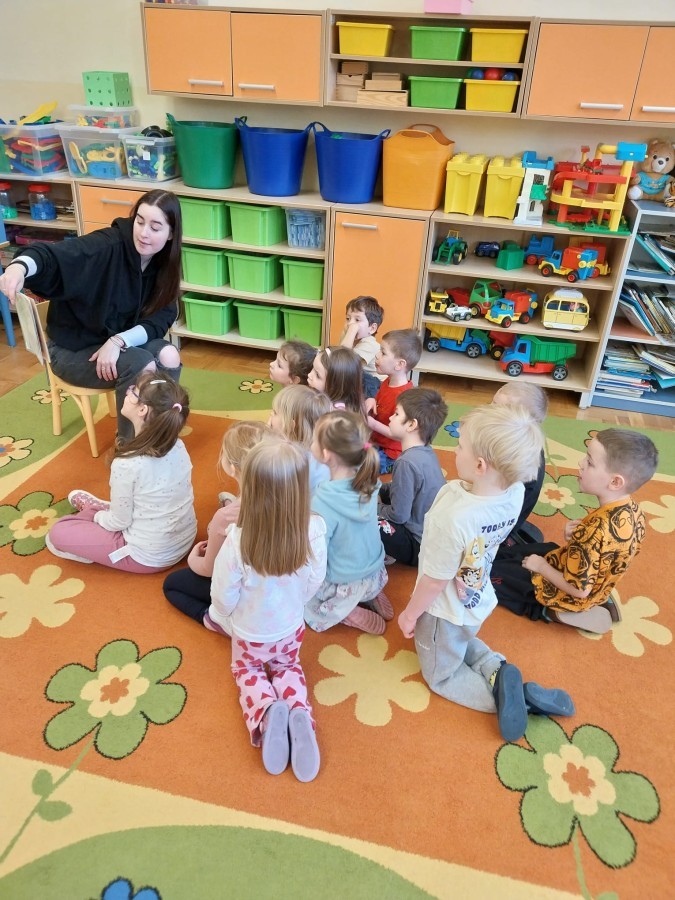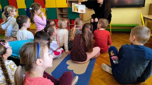 Pani Karolina tym razem na spotkanie z przedszkolakami👩👧👧 przyniosła dwie pozycje książkowe: "Kocie Kicie"😺 oraz "Przygody Franklina".🐢Opowiadania bardzo podobały się przedszkolakom😀 z zaciekawieniem słuchały przygód ich książkowych przyjaciół😺🐢😀.