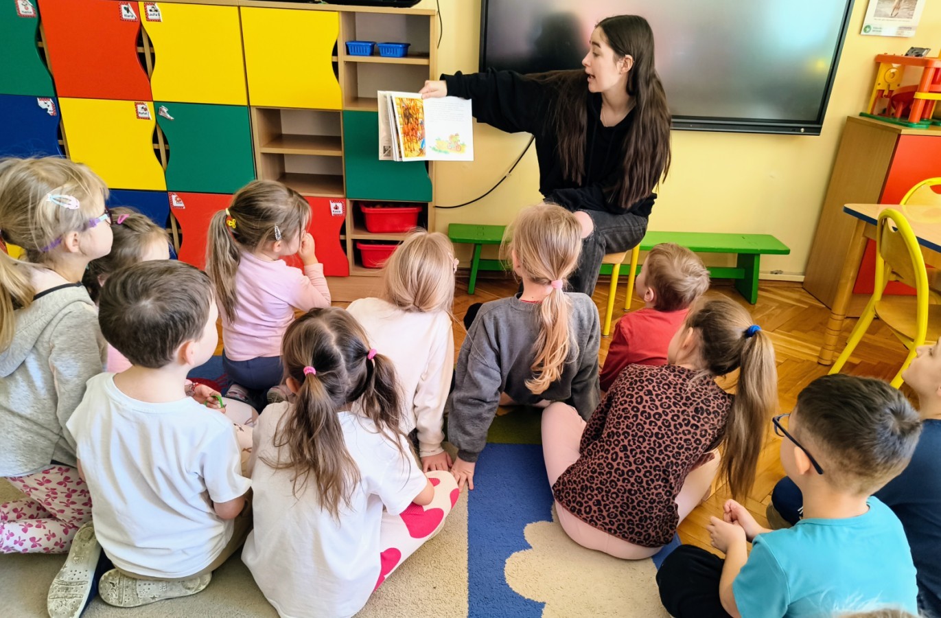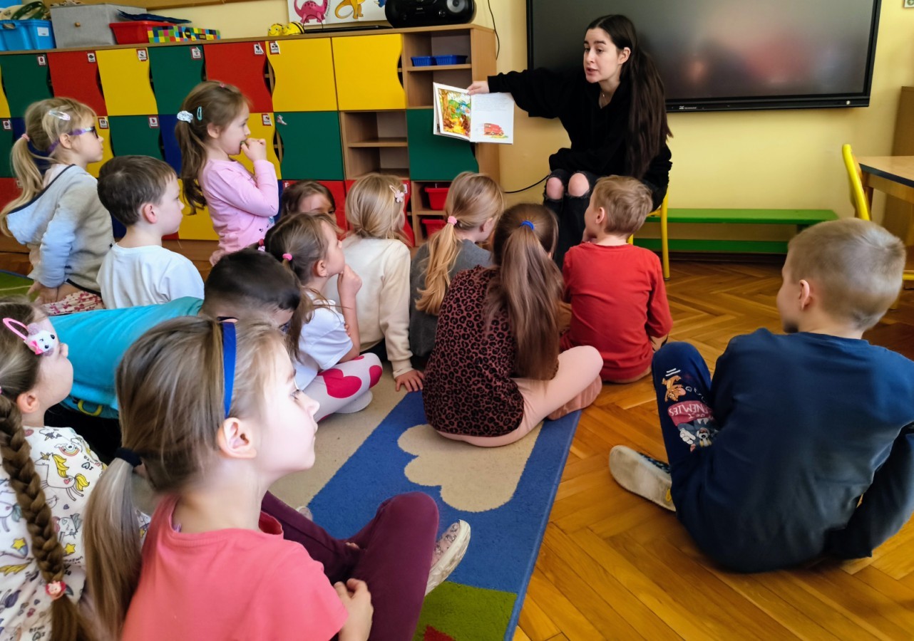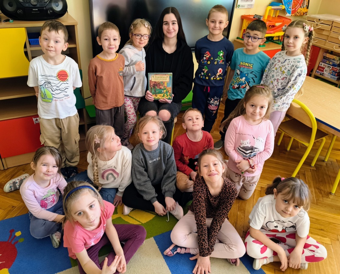 Pani Karolina tym razem na spotkanie z przedszkolakami👩👧👧 przyniosła dwie pozycje książkowe: "Kocie Kicie"😺 oraz "Przygody Franklina".🐢Opowiadania bardzo podobały się przedszkolakom😀 z zaciekawieniem słuchały przygód ich książkowych przyjaciół😺🐢😀.