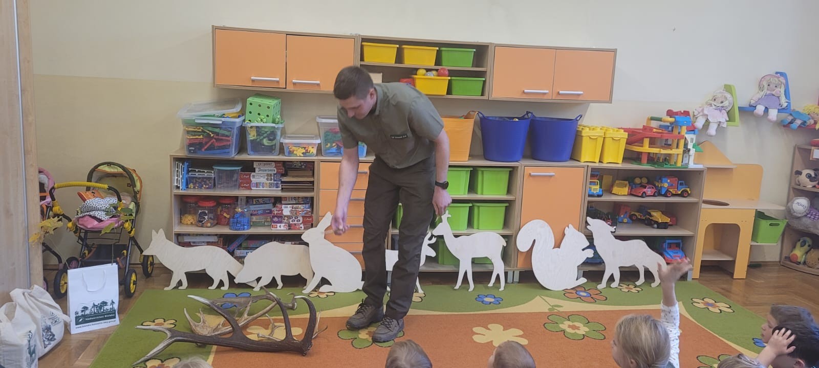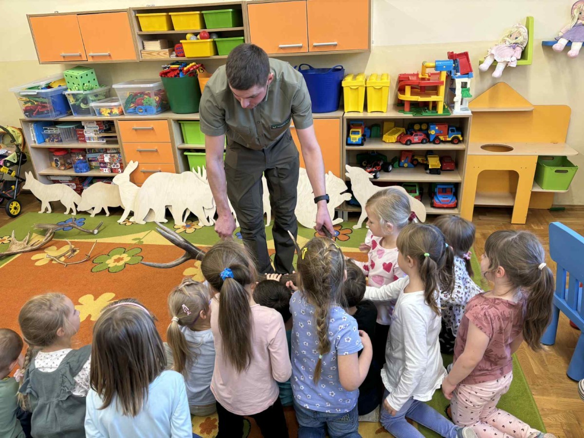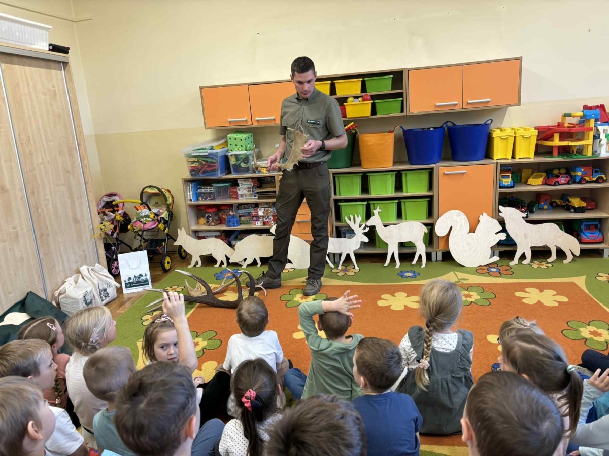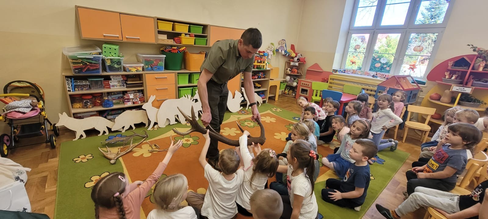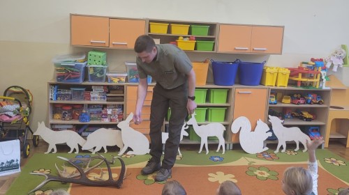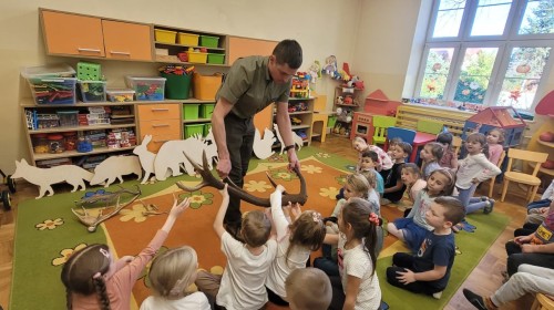 3 listopada gościem w naszym przedszkolu był Pan leśniczy z Nadleśnictwa Bielsko - Biała w Wapienicy.🌲🌳🌲 Spotkanie z udziałem dzieci z grupy Biedronki🐞 oraz z grupy Krasnale😀 dotyczyło zwierząt żyjących w naszych lasach.🦊🦔🦉 Pan leśniczy w ciekawy sposób przybliżył nam wygląd, sposób życia i zwyczaje zwierząt. Niewątpliwą atrakcją była możliwość zobaczenia poroża jelenia, sarny i łosia. Bardzo dziękujemy za ciekawe wiadomości o zwierzętach. 😀