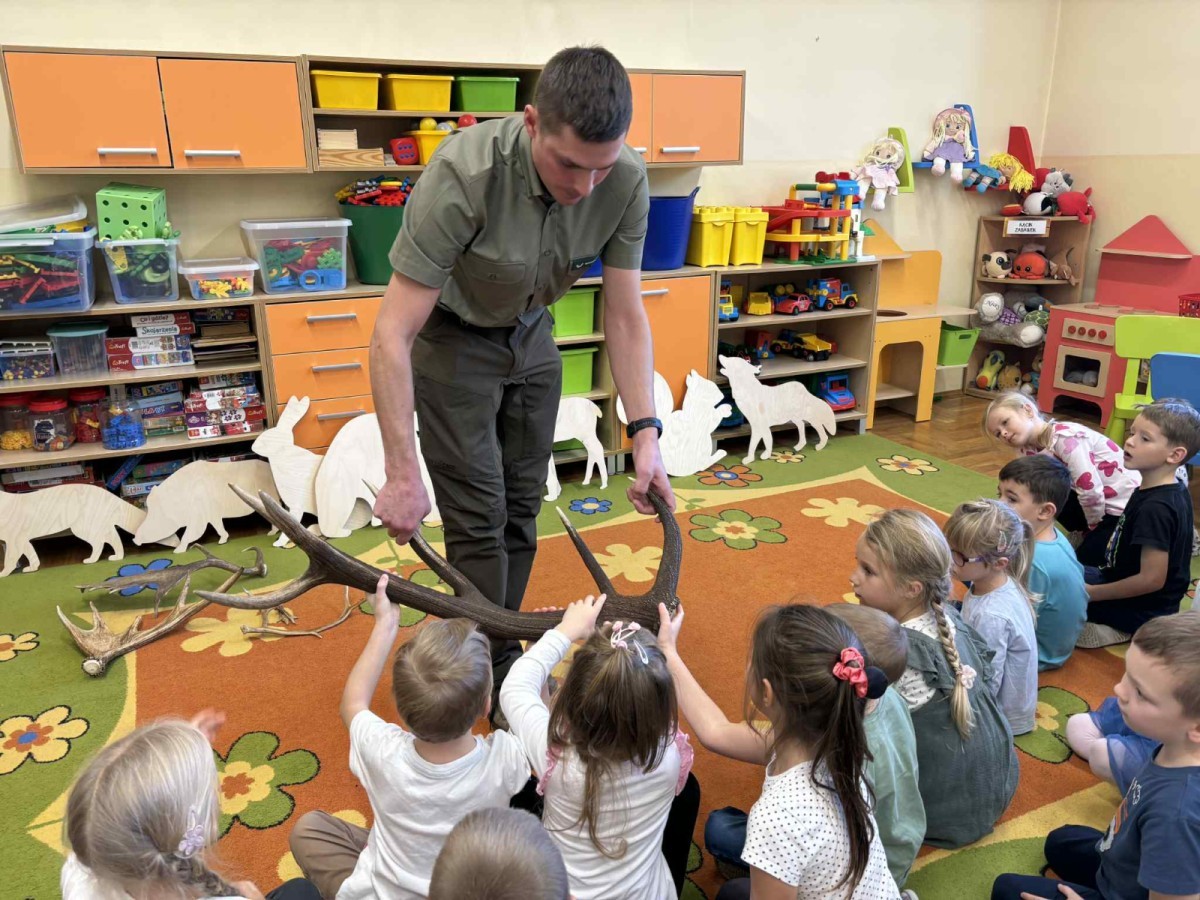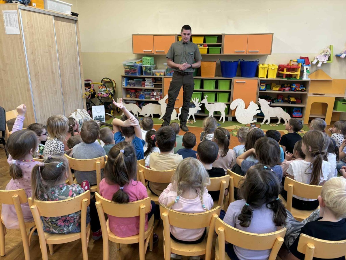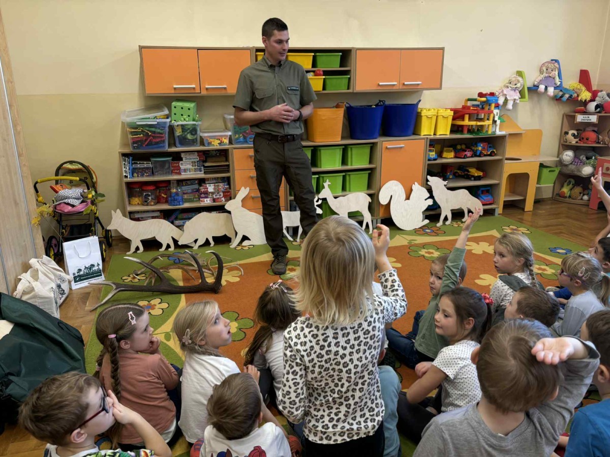 3 listopada gościem w naszym przedszkolu był Pan leśniczy z Nadleśnictwa Bielsko - Biała w Wapienicy.🌲🌳🌲 Spotkanie z udziałem dzieci z grupy Biedronki🐞 oraz z grupy Krasnale😀 dotyczyło zwierząt żyjących w naszych lasach.🦊🦔🦉 Pan leśniczy w ciekawy sposób przybliżył nam wygląd, sposób życia i zwyczaje zwierząt. Niewątpliwą atrakcją była możliwość zobaczenia poroża jelenia, sarny i łosia. Bardzo dziękujemy za ciekawe wiadomości o zwierzętach. 😀