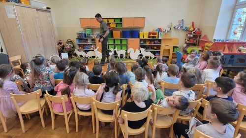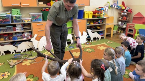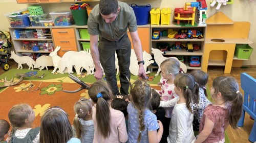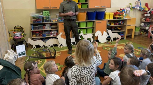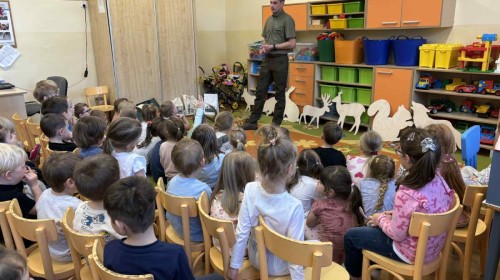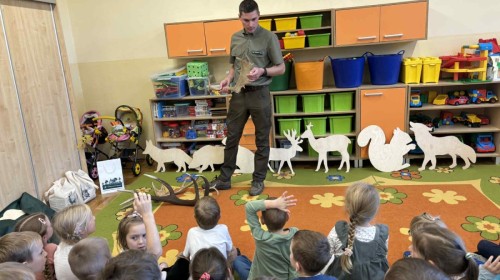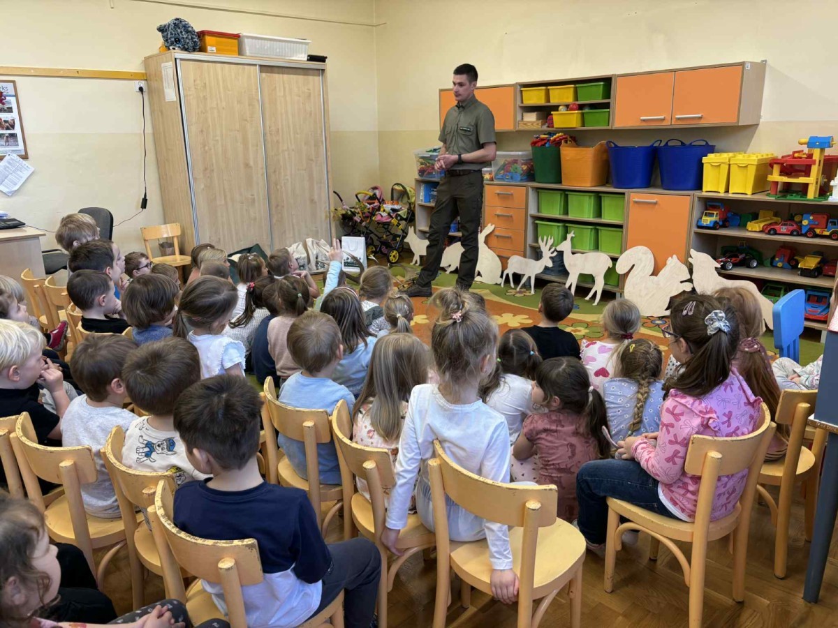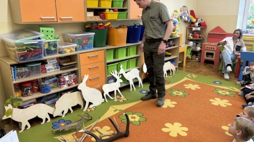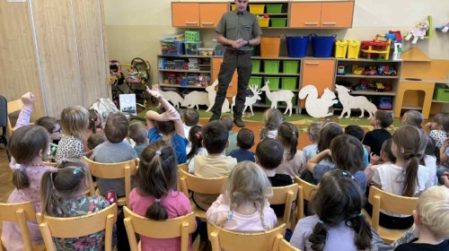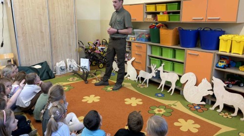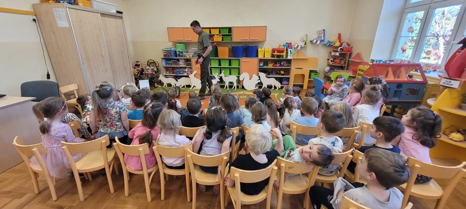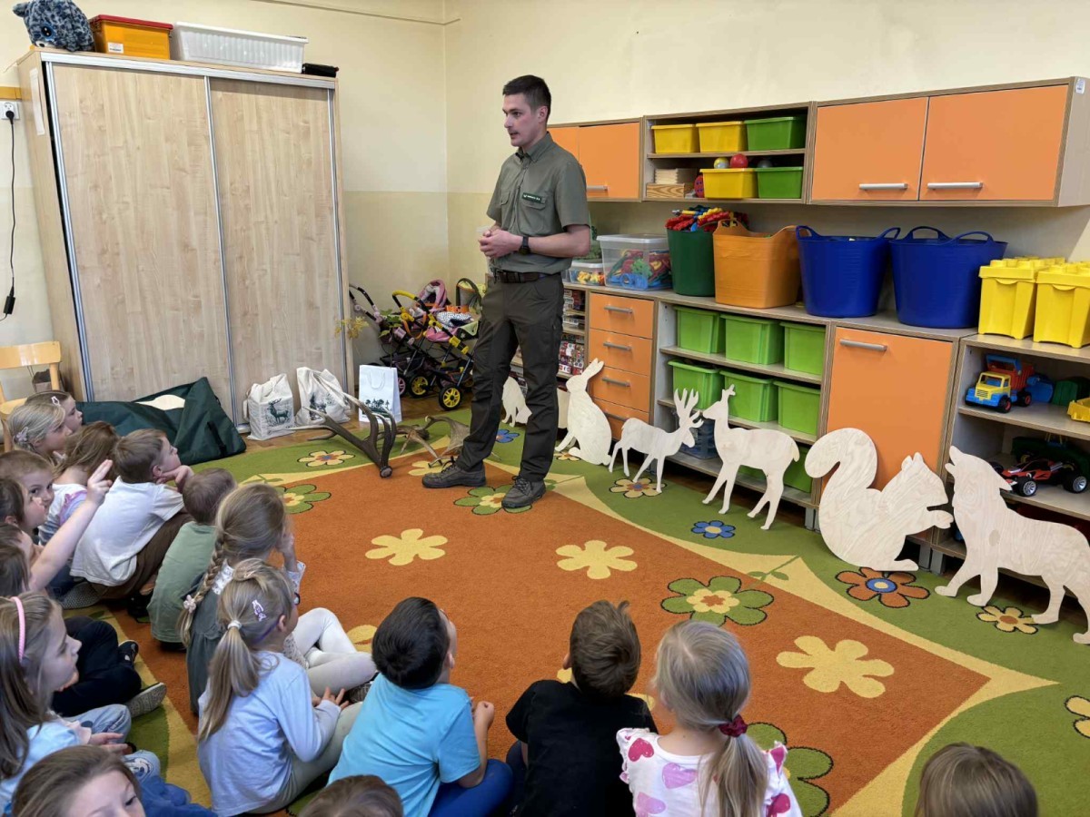 3 listopada gościem w naszym przedszkolu był Pan leśniczy z Nadleśnictwa Bielsko - Biała w Wapienicy.🌲🌳🌲 Spotkanie z udziałem dzieci z grupy Biedronki🐞 oraz z grupy Krasnale😀 dotyczyło zwierząt żyjących w naszych lasach.🦊🦔🦉 Pan leśniczy w ciekawy sposób przybliżył nam wygląd, sposób życia i zwyczaje zwierząt. Niewątpliwą atrakcją była możliwość zobaczenia poroża jelenia, sarny i łosia. Bardzo dziękujemy za ciekawe wiadomości o zwierzętach. 😀