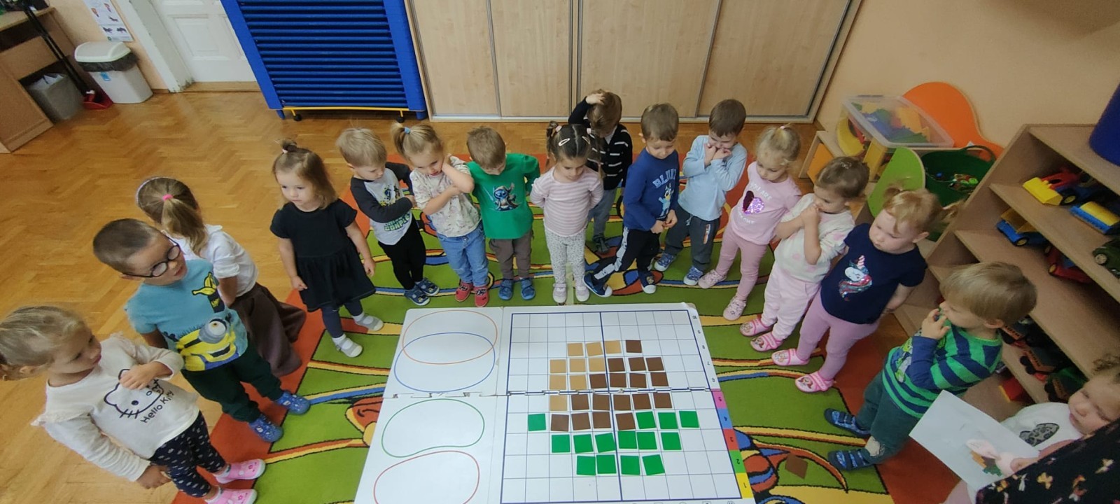 Jesień to taka pora roku, w której świat mieni się wokół nas tysiącem barw.🍁🍂🍁 Spadające liście tworzą na ziemi kolorowe dywany a pod drzewami można znaleźć prawdziwe jesienne skarby, czyli orzechy laskowe.🌰 To właśnie one stały się bohaterami zakodowanych zabaw w najmłodszej grupie. 🎲 Stokrotki układały na macie do kodowania z kolorowych kartoników orzech laskowy.🌰 Brawo👏👏👏 Stokrotki.🌼
