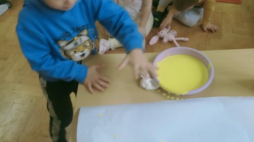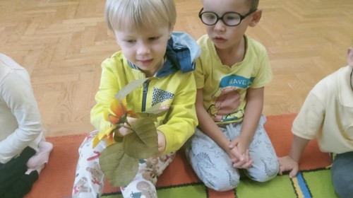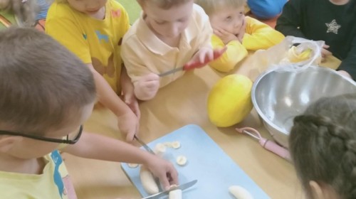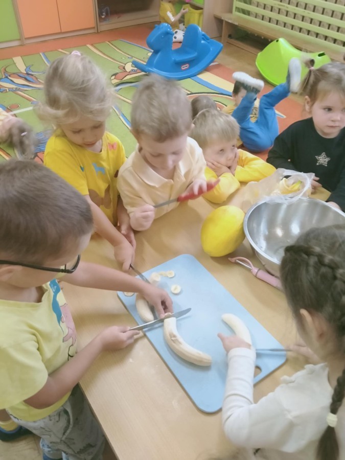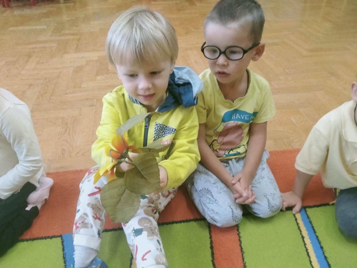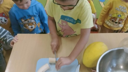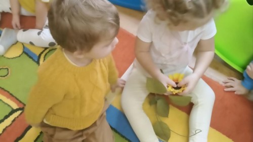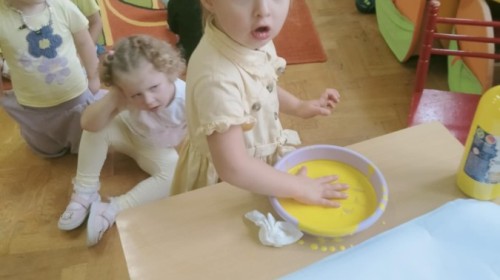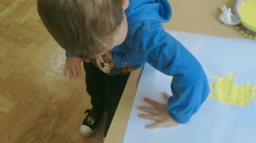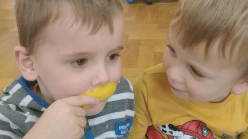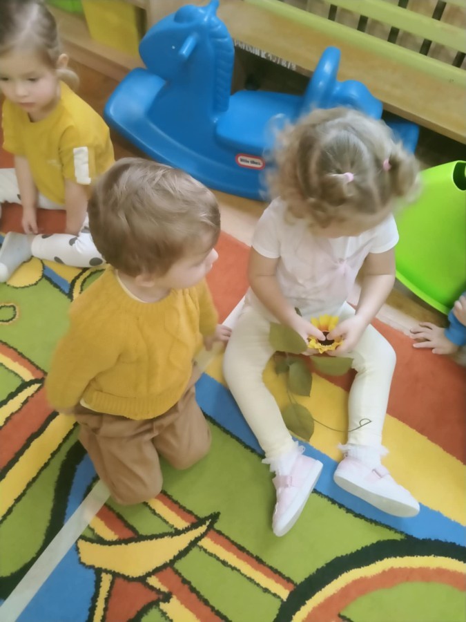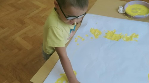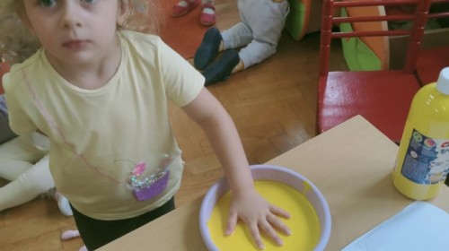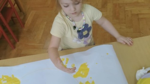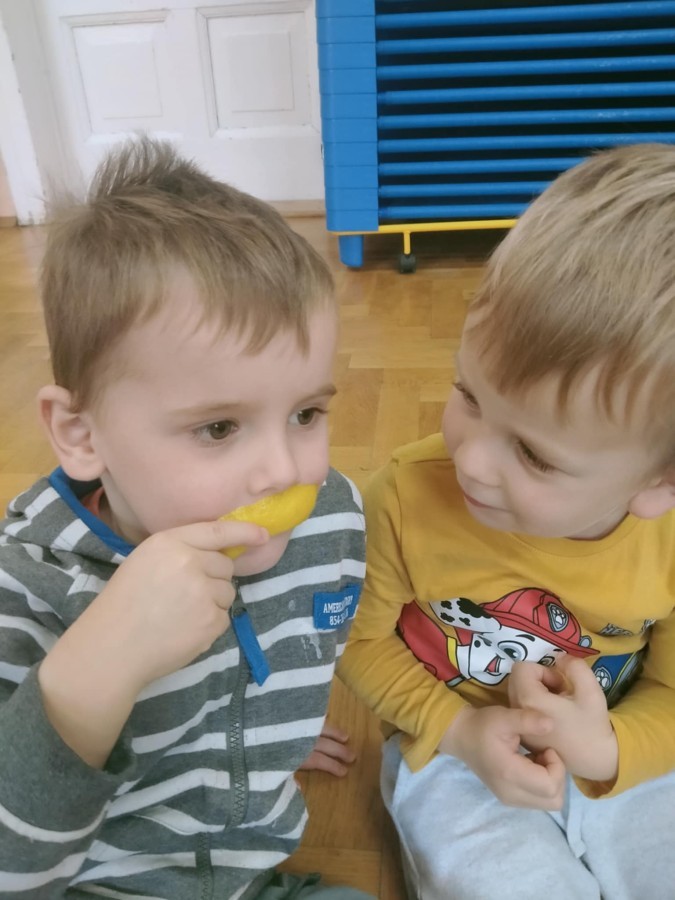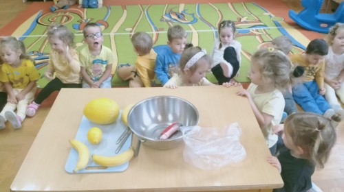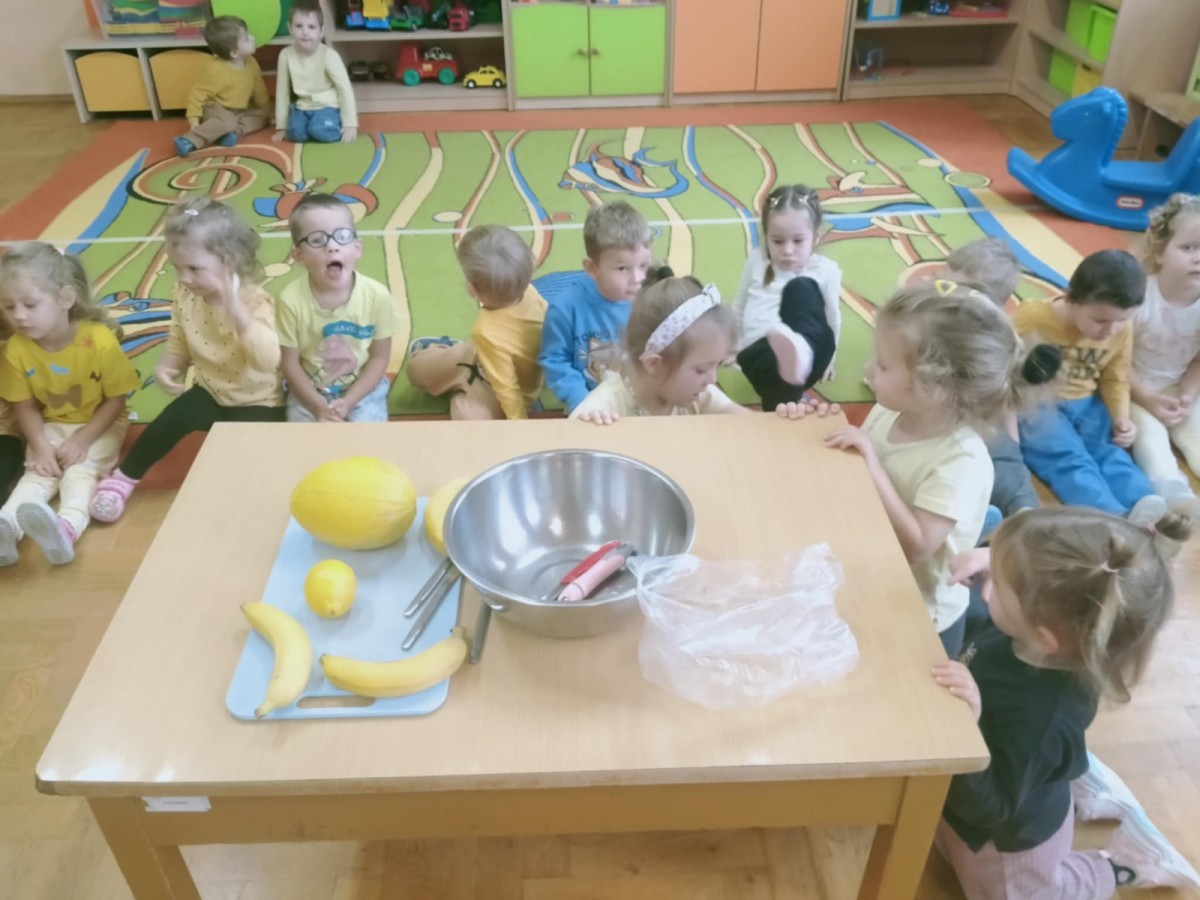 We wtorek nasze Stokrotki🌼 obchodziły Żółty Dzień🟡. Wszyscy mieli na sobie ubrania z czymś żółtym. Poznaliśmy żółty jesienny kwiat - słonecznik.🌻 Dzieci spróbowały żółtych owoców, które uprzednio same kroiły na kawałki.🍋🍌🍈 I wielkie brawa👏👏👏 dla Stokrotek🌼, gdyż nie krzywiły się przy jedzeniu cytryny,🍋 a nawet wolały o jeszcze! Nasze najmłodsze przedszkolaczki wykonały słoneczko,🌞 malując je odciskami swoich rączek w żółtej farbie.🖐🟡 Na koniec gimnastykowaly się do dźwięków "Yellow Submarine" zespołu The Beatles "🎶😀